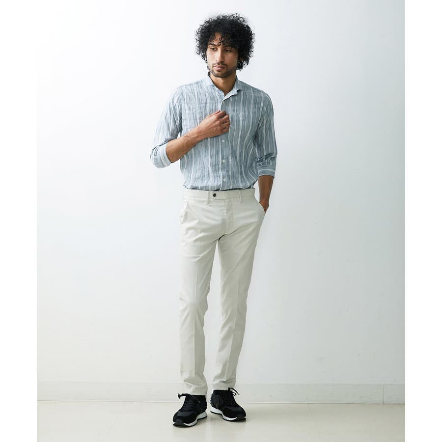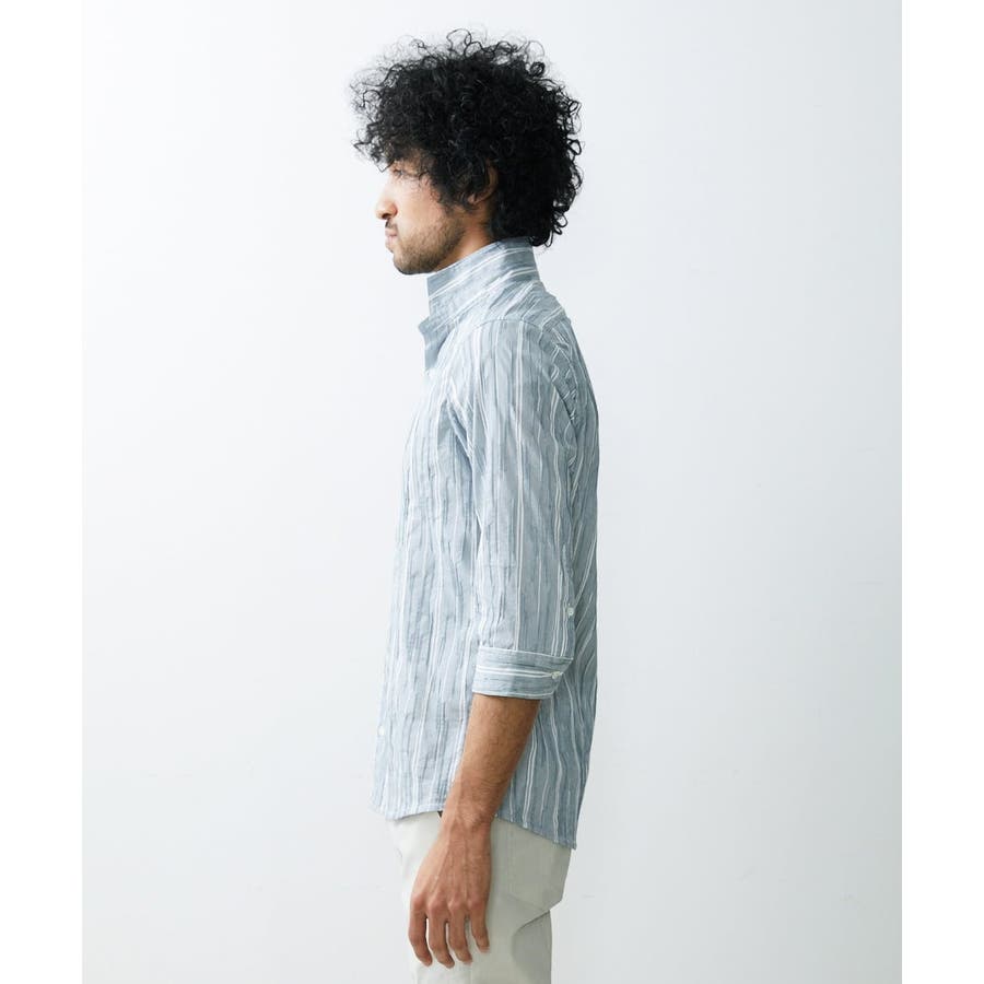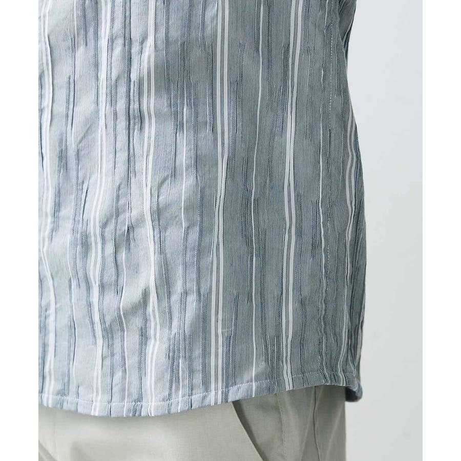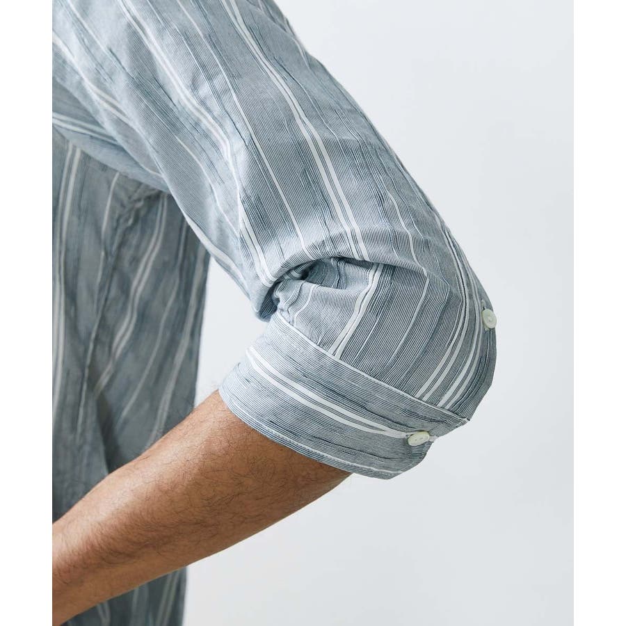 ・爽やかなストライプの見え方とドビー織機を使用した独特な凸凹感でストレッチ性も備えています