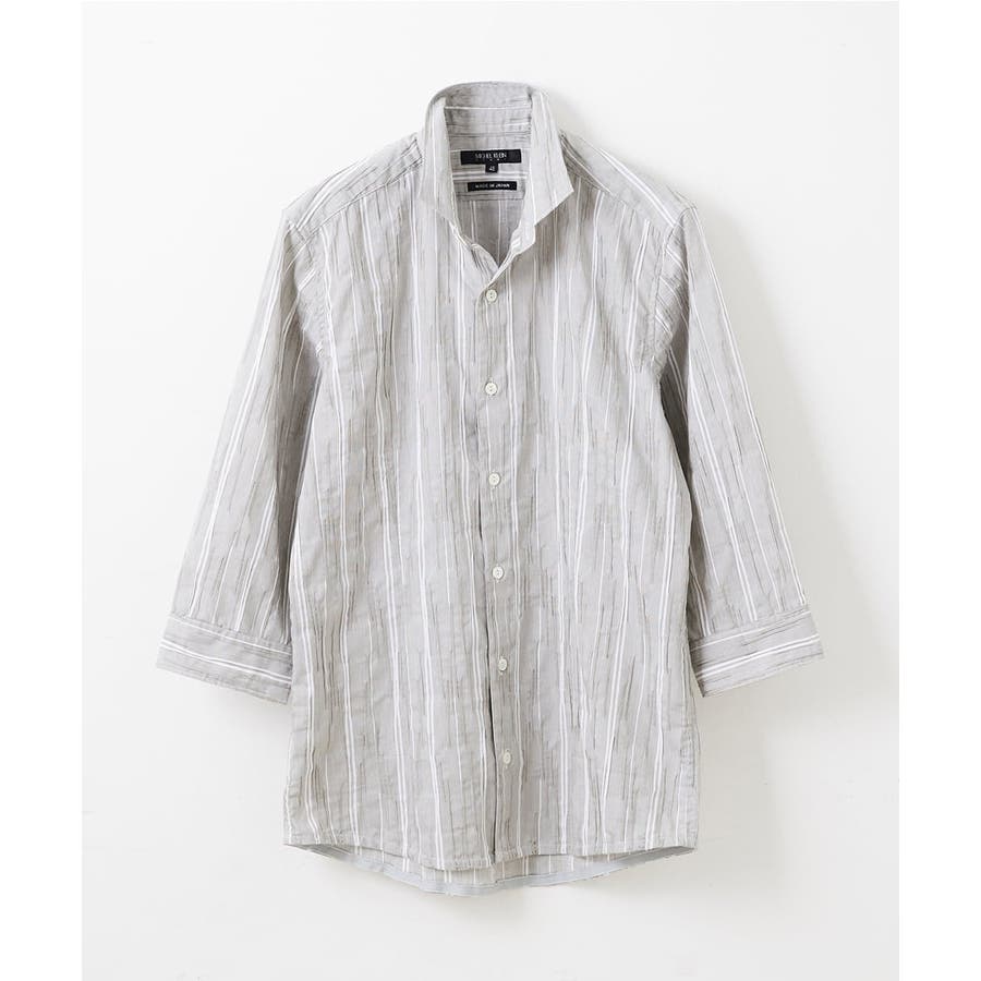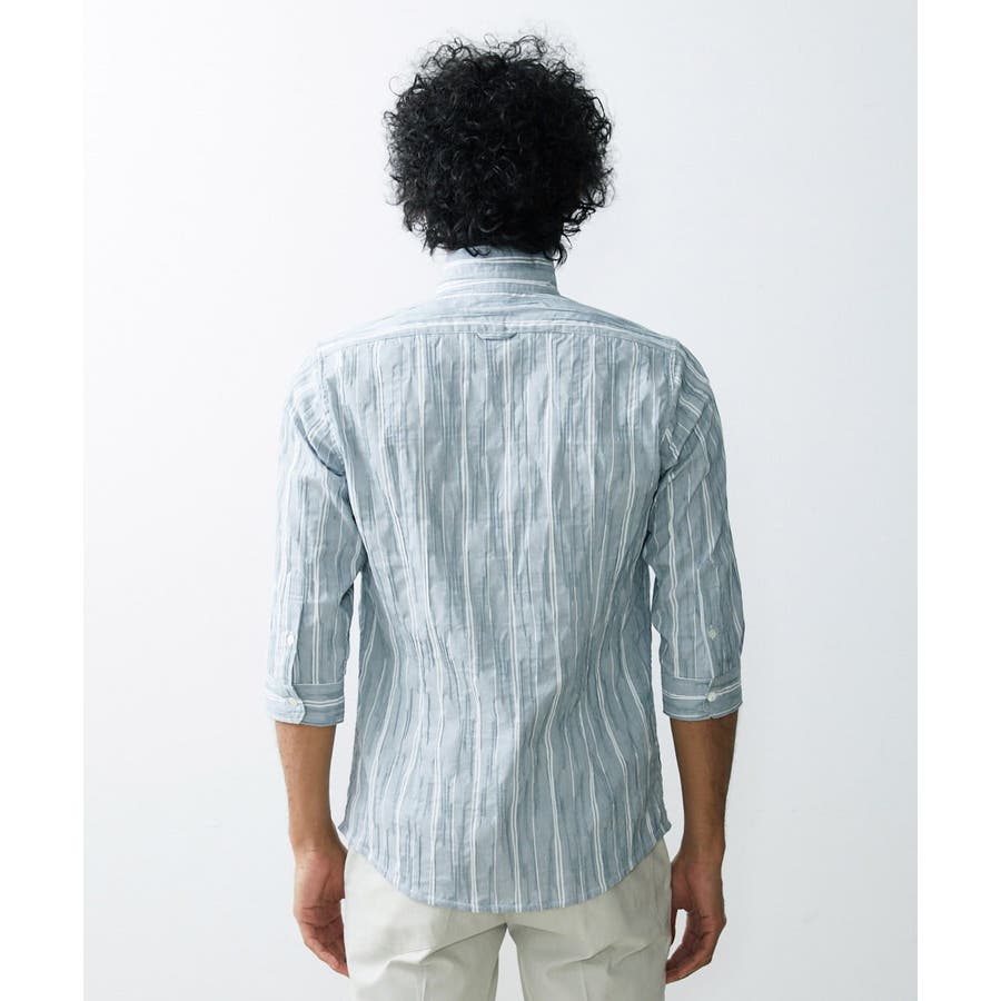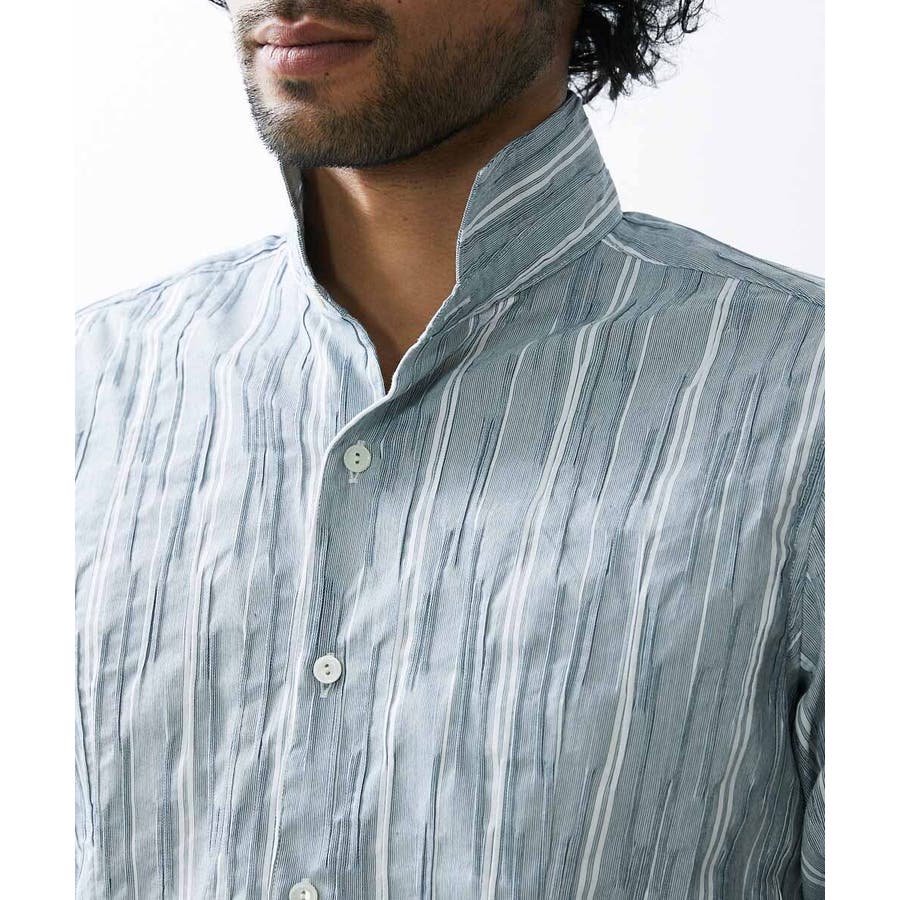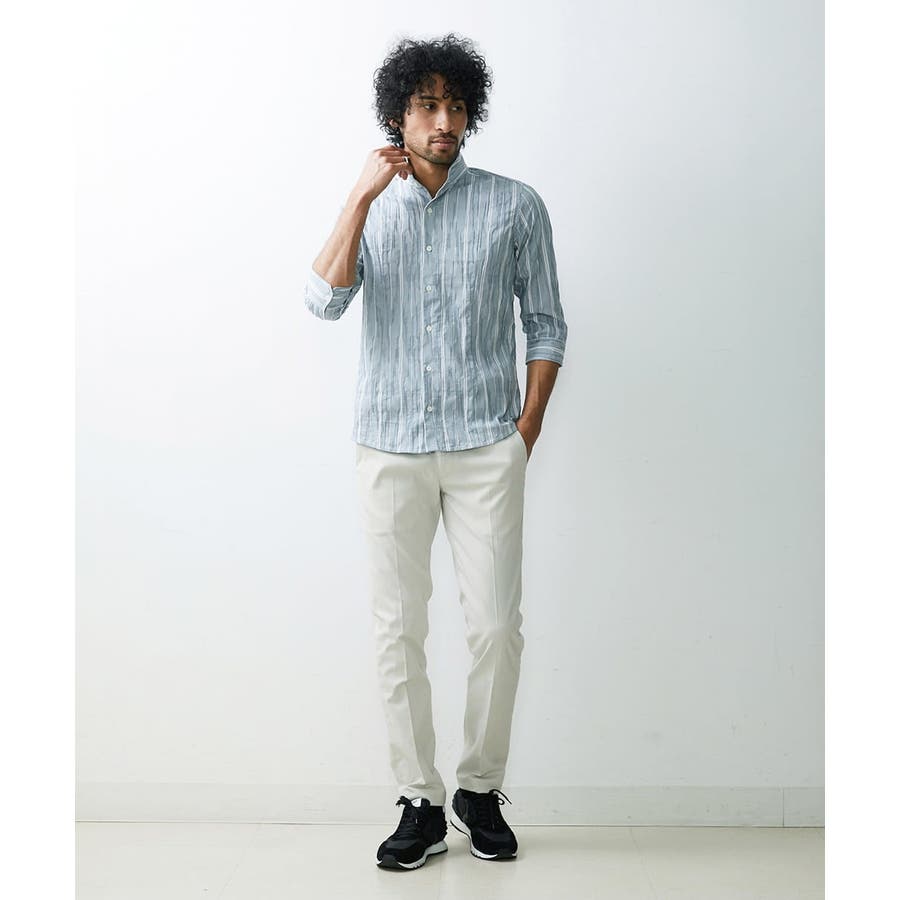・爽やかなストライプの見え方とドビー織機を使用した独特な凸凹感でストレッチ性も備えています