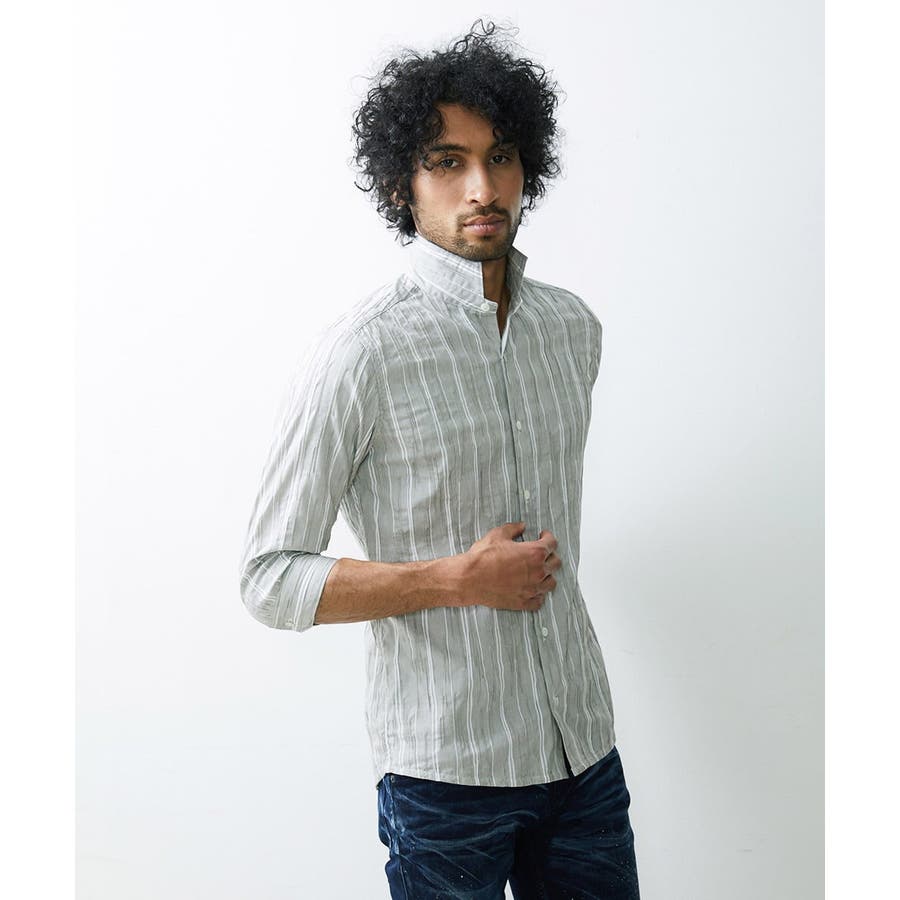 ・羽織感覚で着られる「スタンドカラー」デザインシャツ