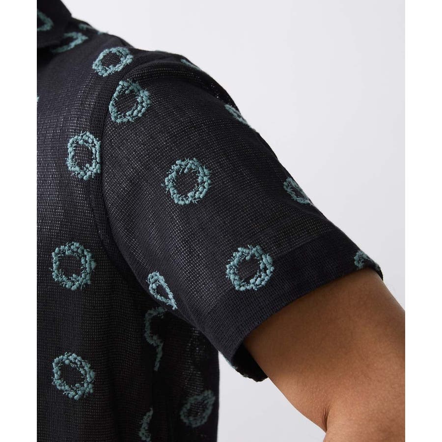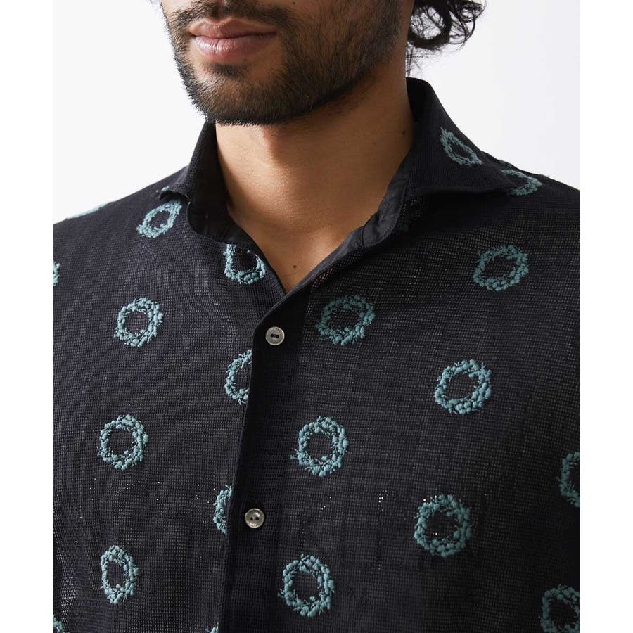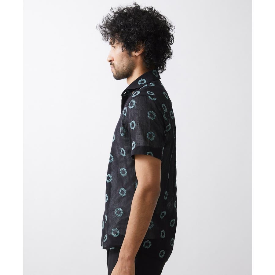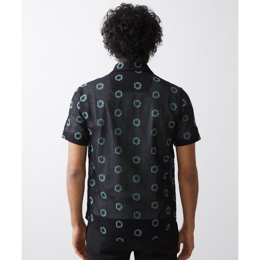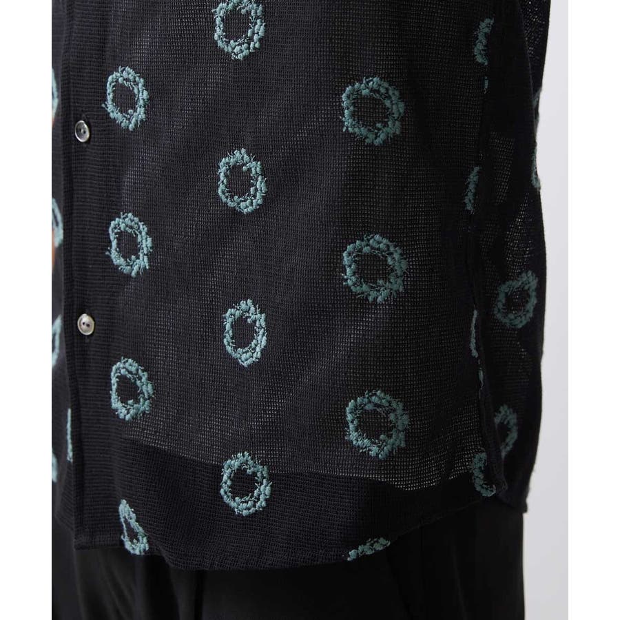 ・メッシュ状の生地に円形の刺繍を施してインパクトのある表面感