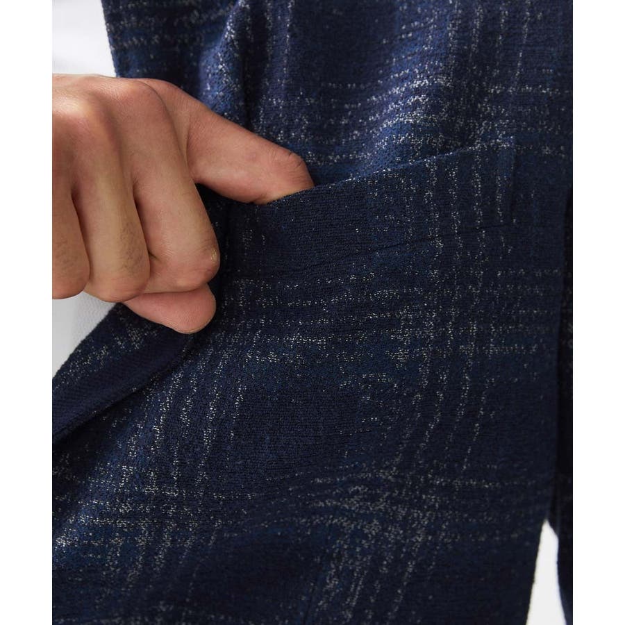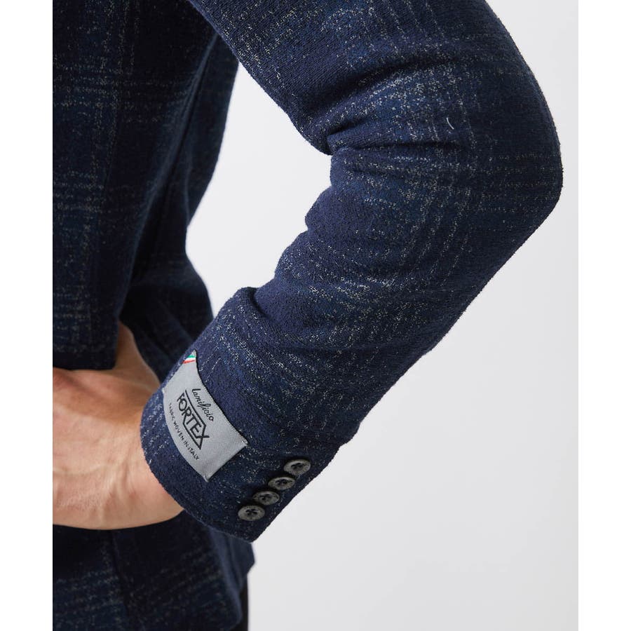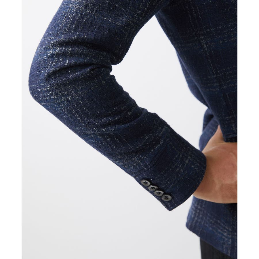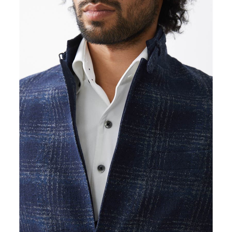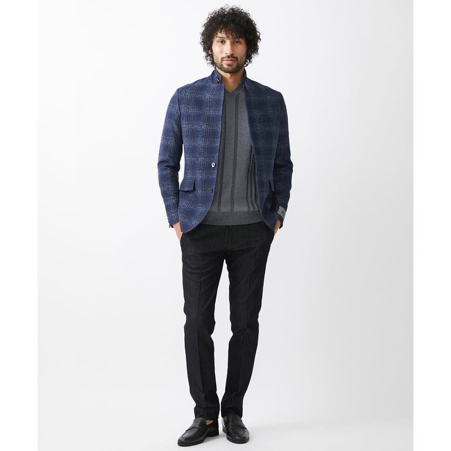 ・チェックの身頃と同色の無地ベロア生地を襟とラペル周りに使用