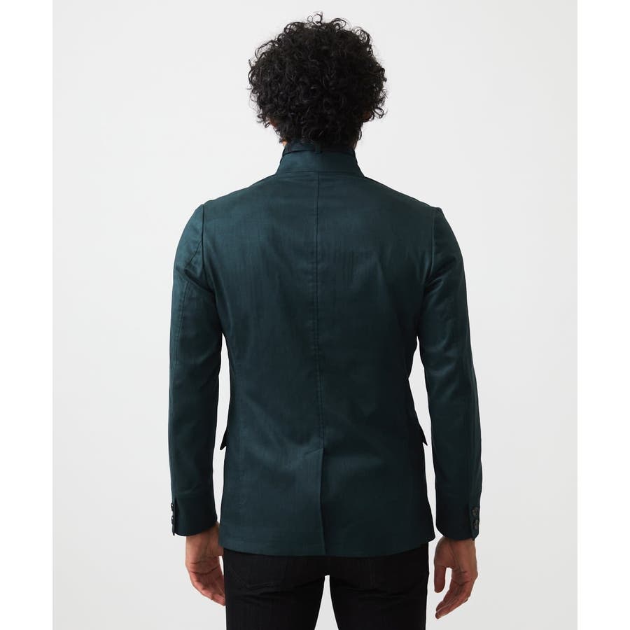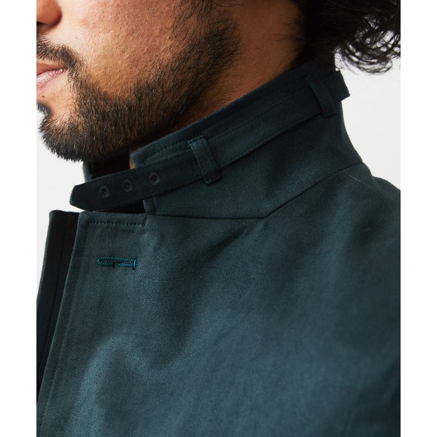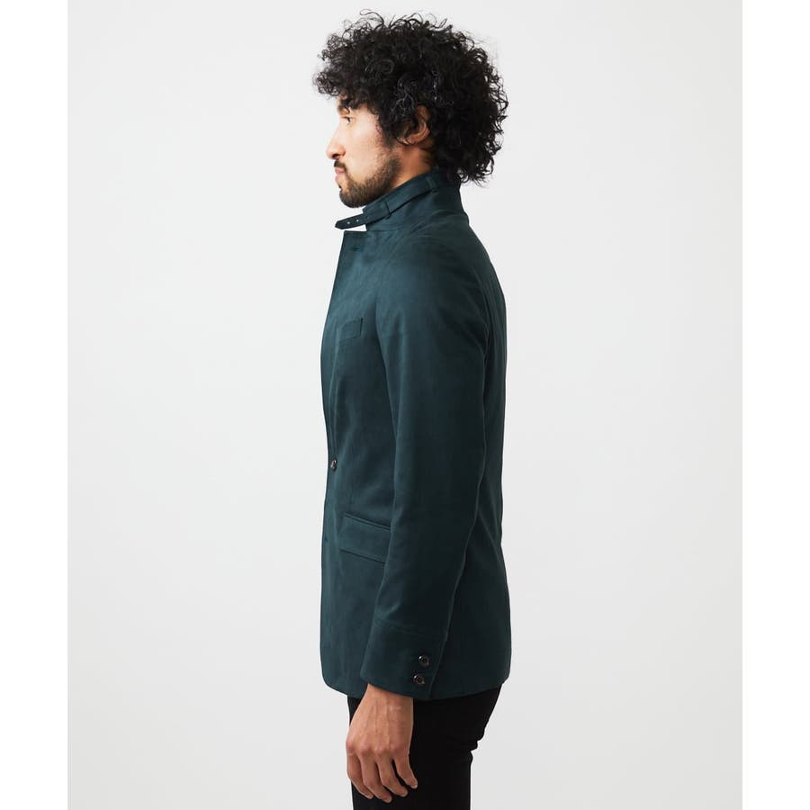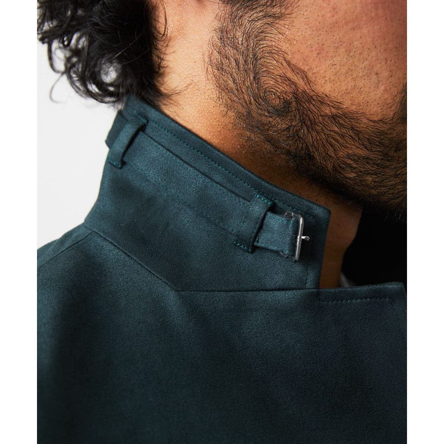 ・襟を立てることで、襟周りに配されたベルトがアクセントとなり、スタンドカラージャケットとしても着用可能。