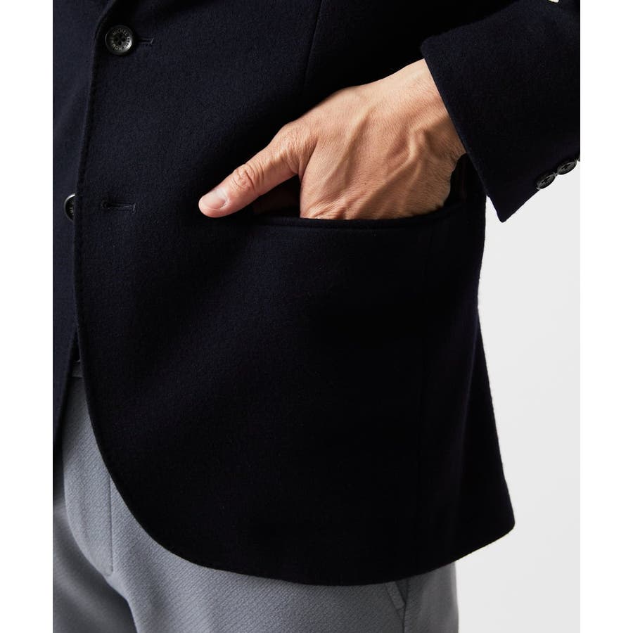 ・ラペル、上衿周り、フラップにはAMFステッチを施し仕立て映えするディテール。