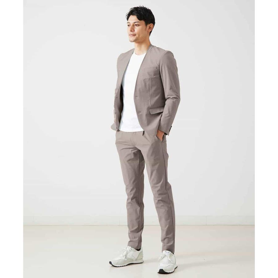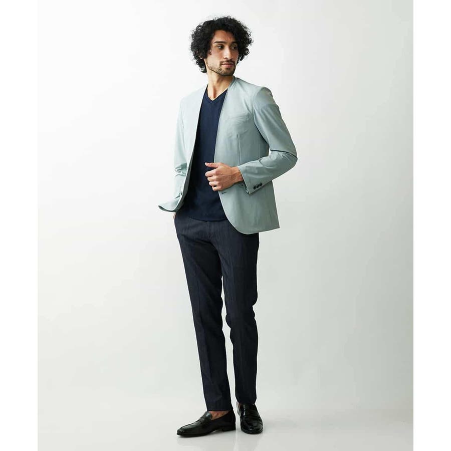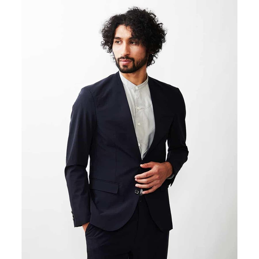 ・シンプルで無駄のないニュートラルなノーカラーのセットアップジャケット