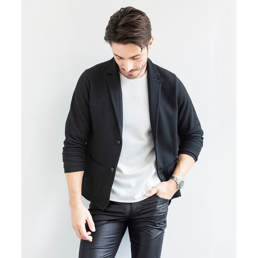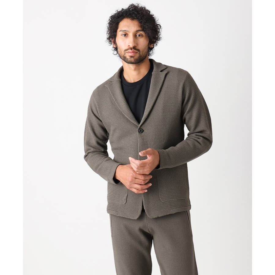 ・ハイゲージでありながら適度な立体感あるバスケット編地をジャケットに仕上げました