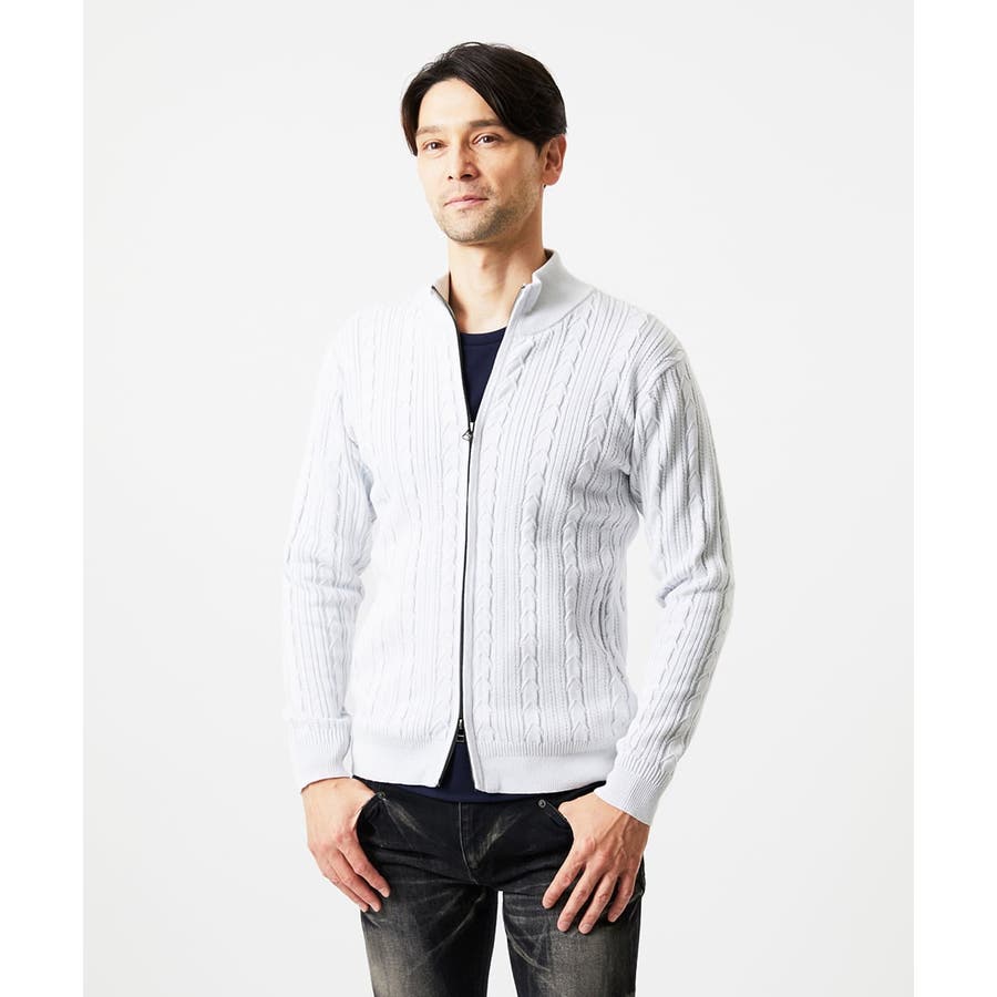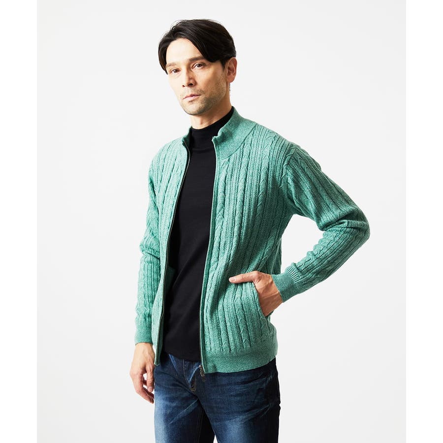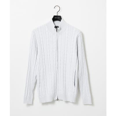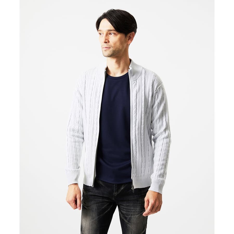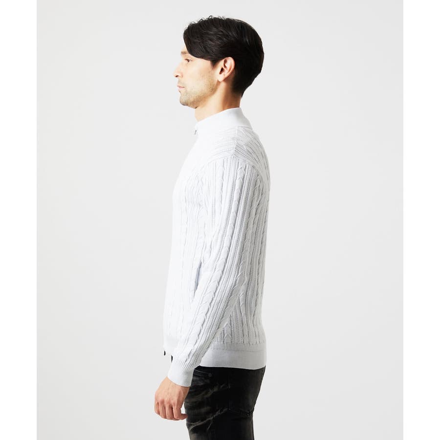編み込みスタンドカラーニットブルゾン