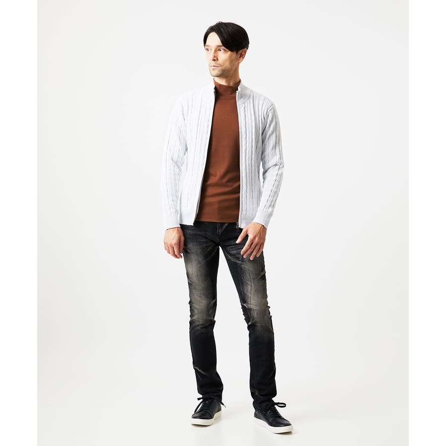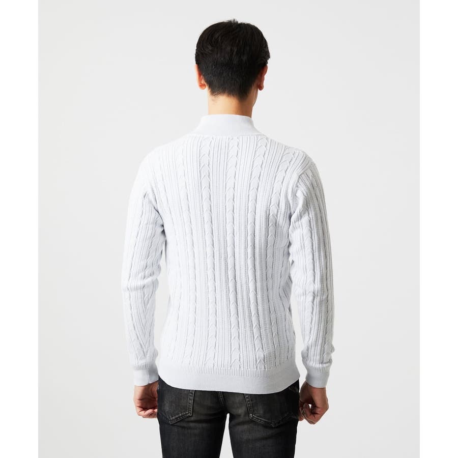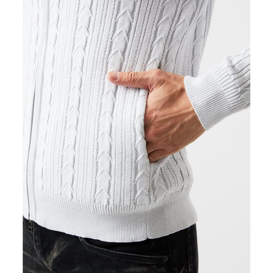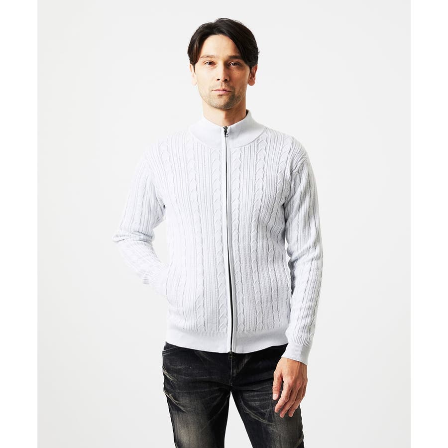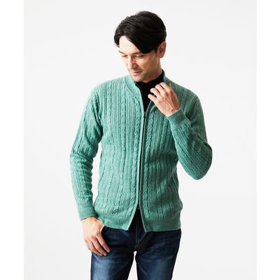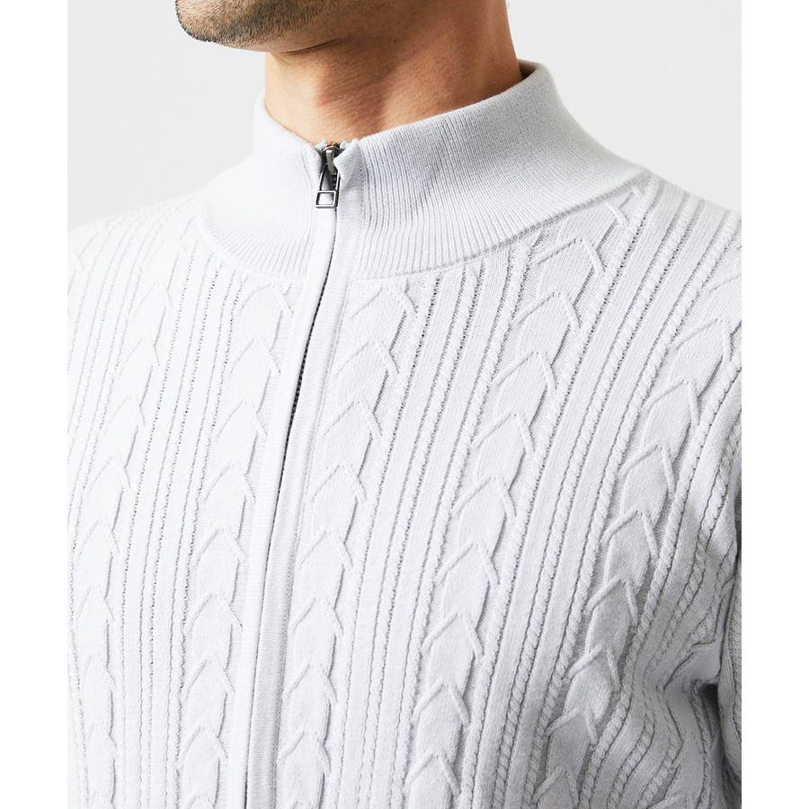 編み込みスタンドカラーニットブルゾン