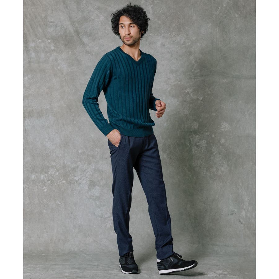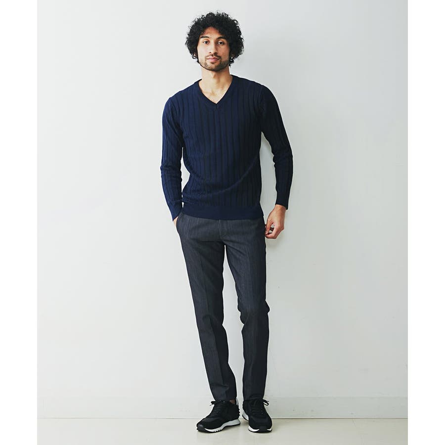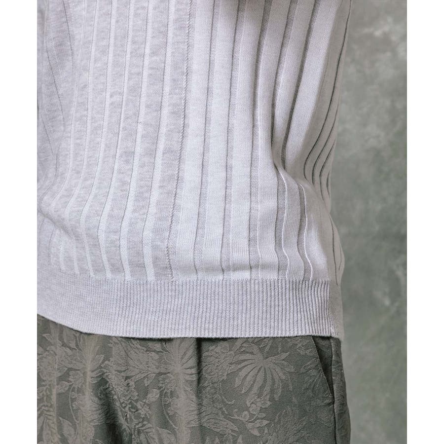 ・細身のシルエットを維持できるサイズ感とワイドリブ組織の伸縮性でより身体にフィット