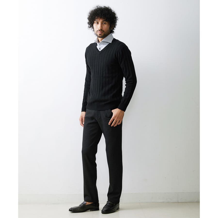 オンオフに使えるファッショナブルなVネックセーター