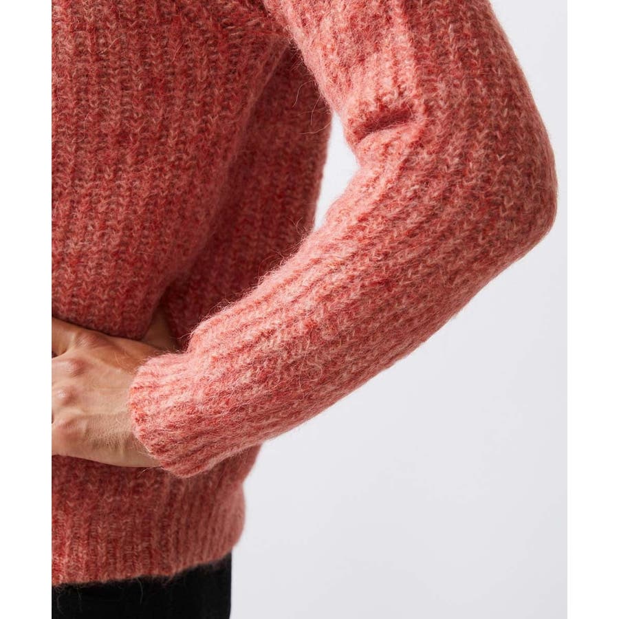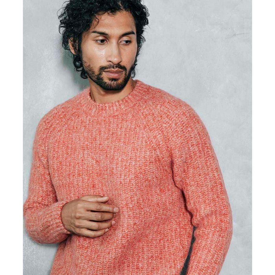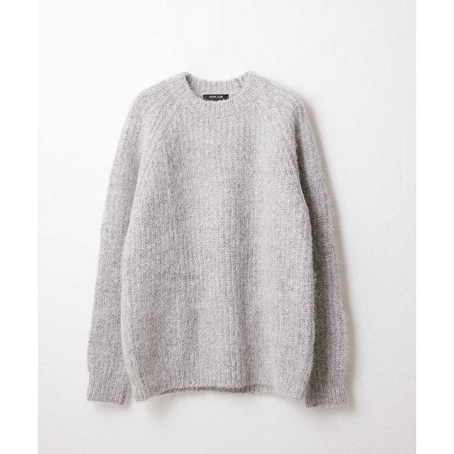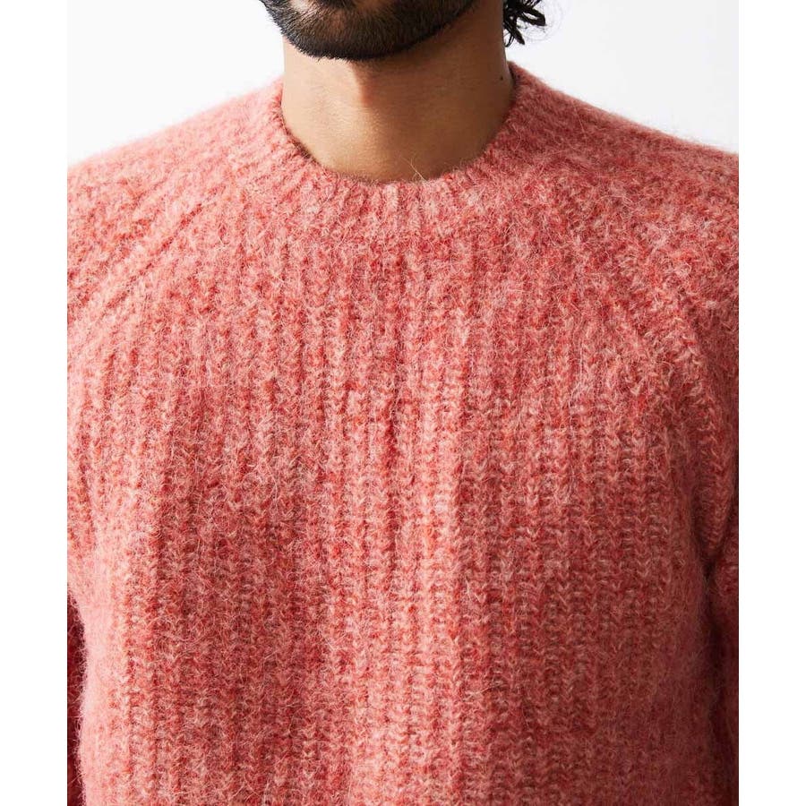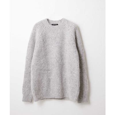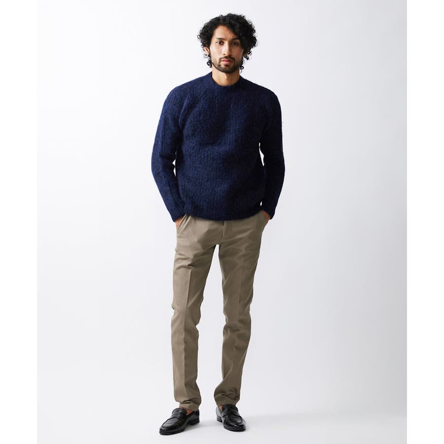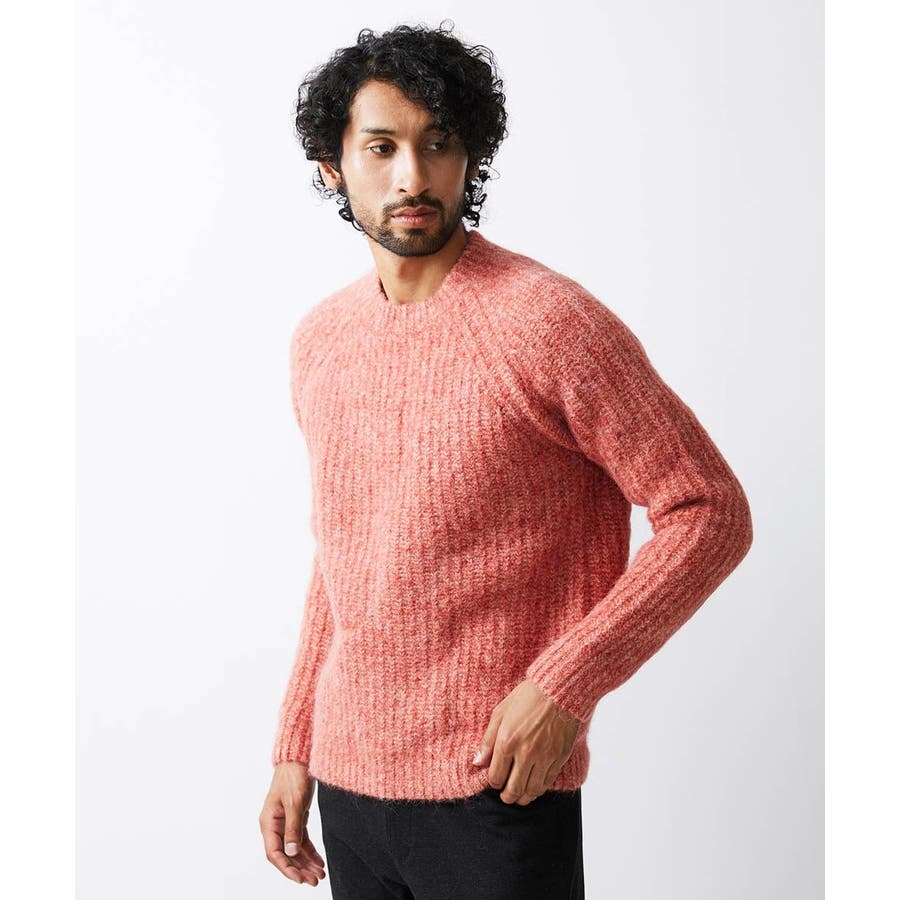・3Gで編み上げた温かみあるクルーニット。ローゲージの2色引き揃えで肉感の出た片畦組織