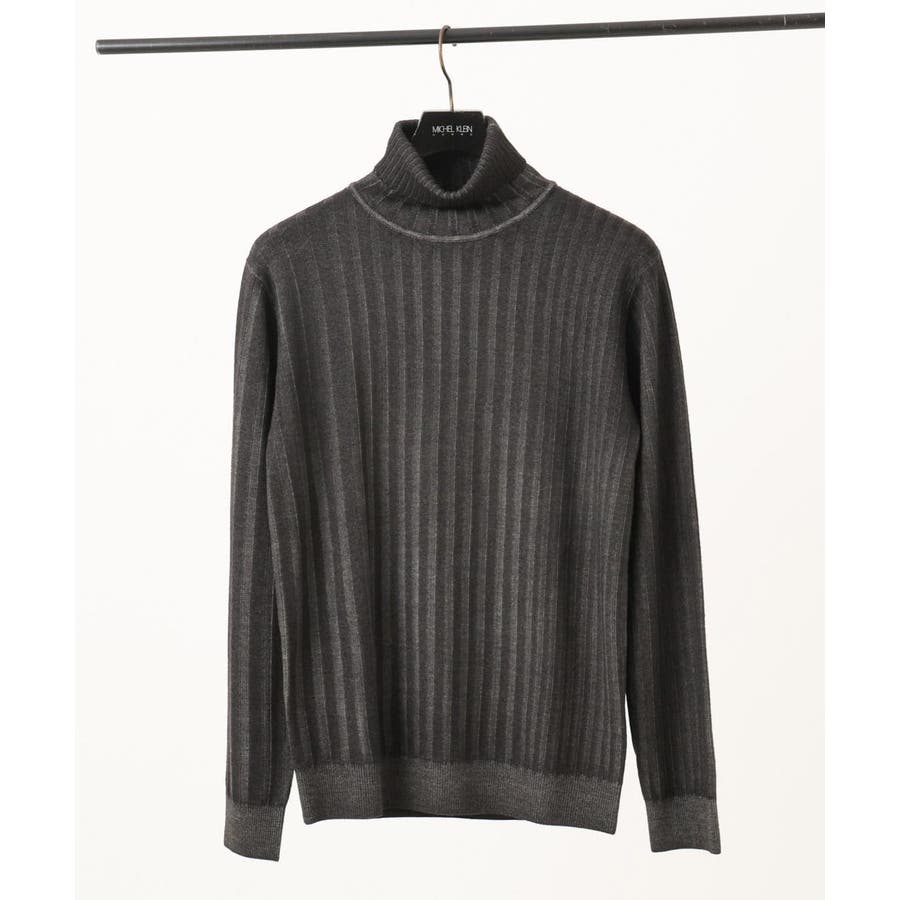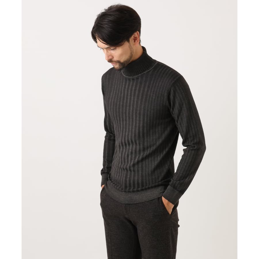 ・100%ウール/天然素材を12G1Pで繊細に編み上げたグラデーションリブ。
