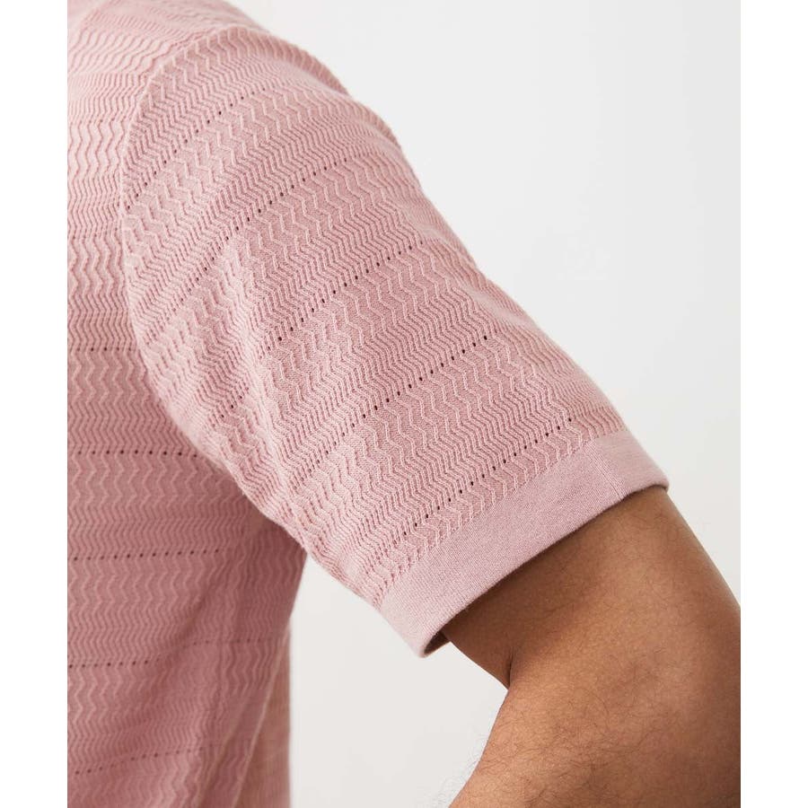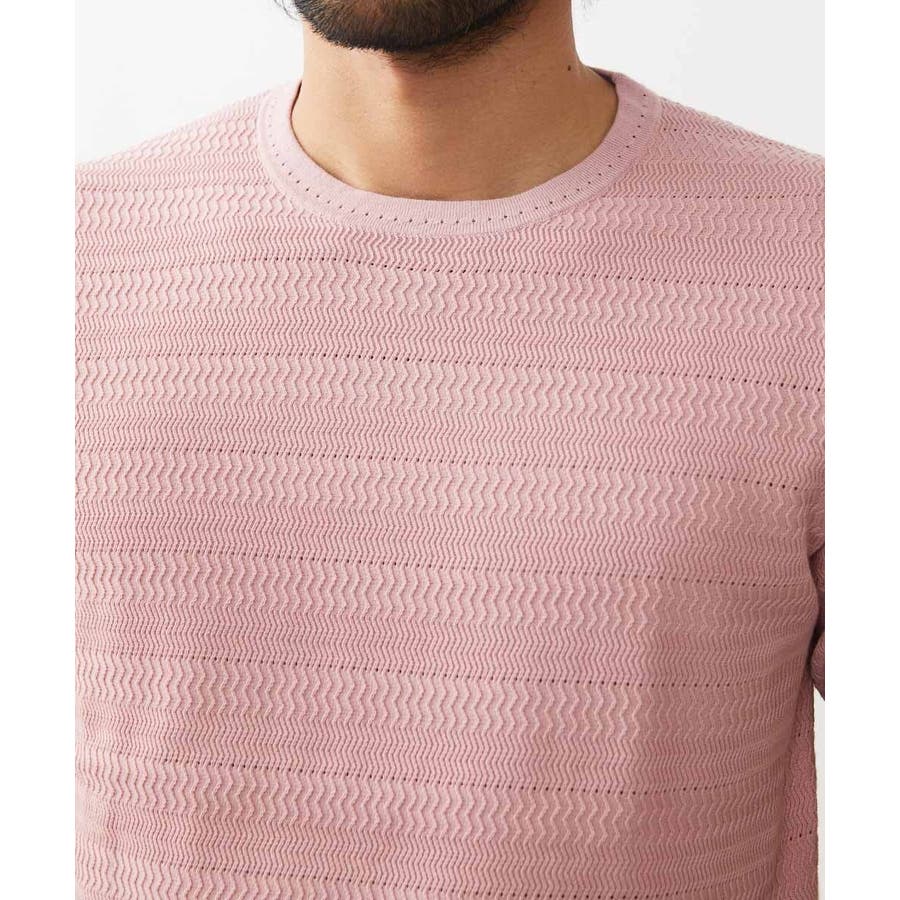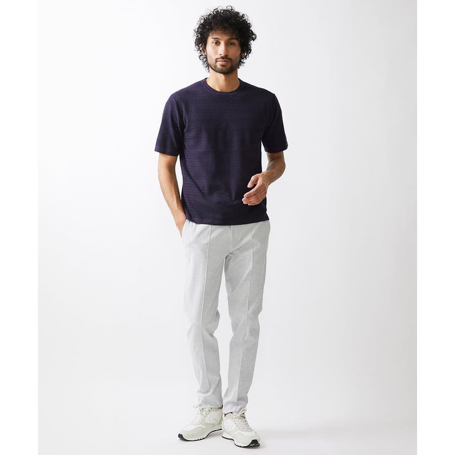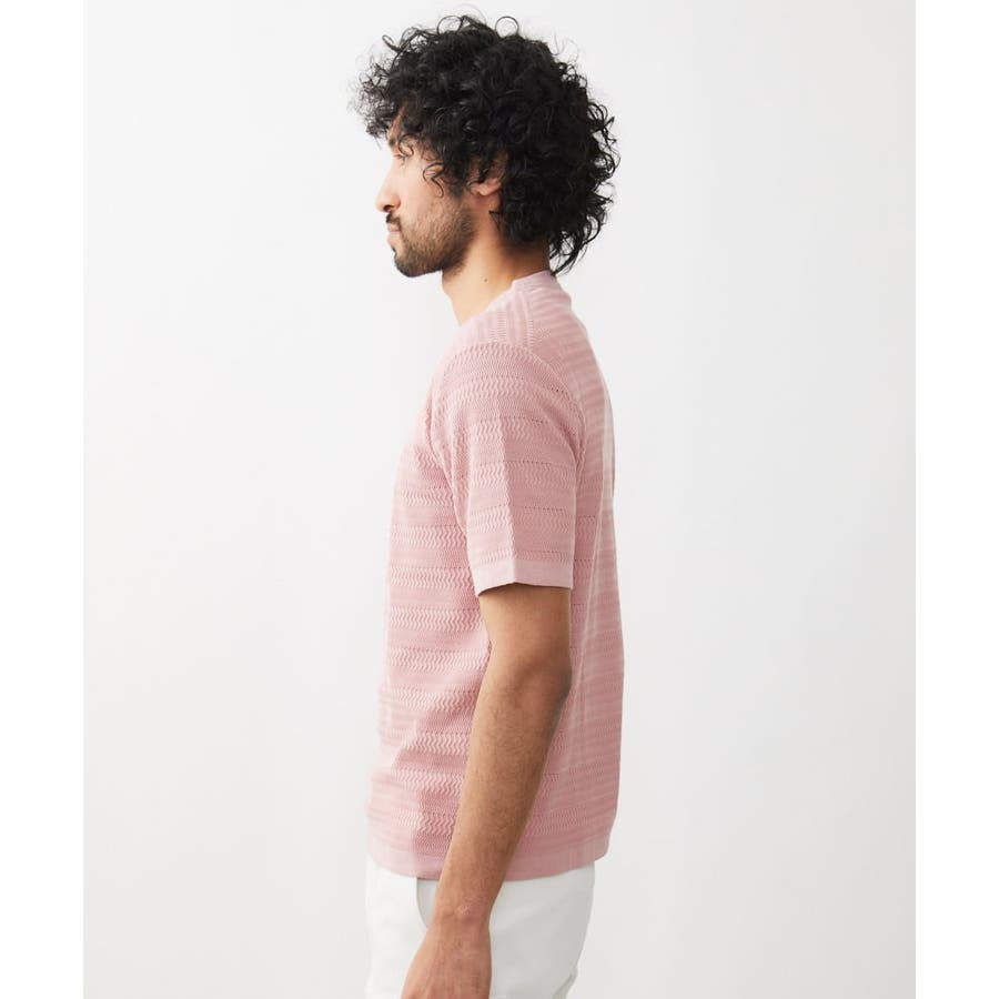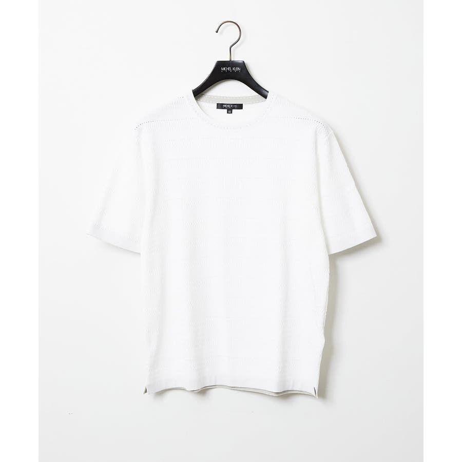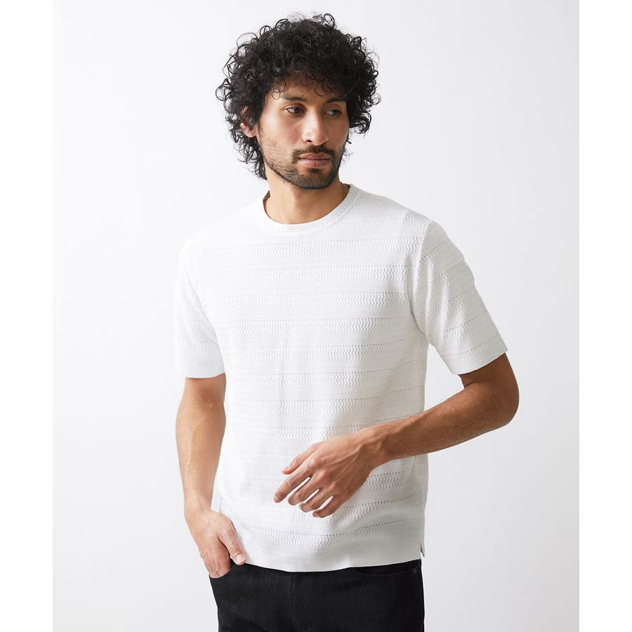 ・クルーネックの半袖ニットをTシャツライクな仕上げに。