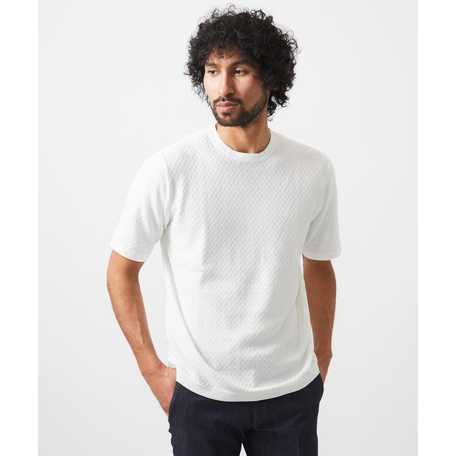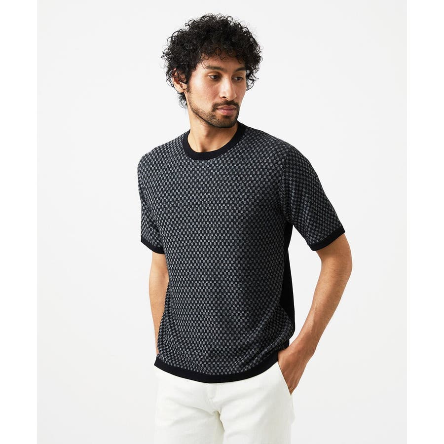 ・スクエア柄を縦目と横目交互に編み込み、表情豊かなモノグラム柄