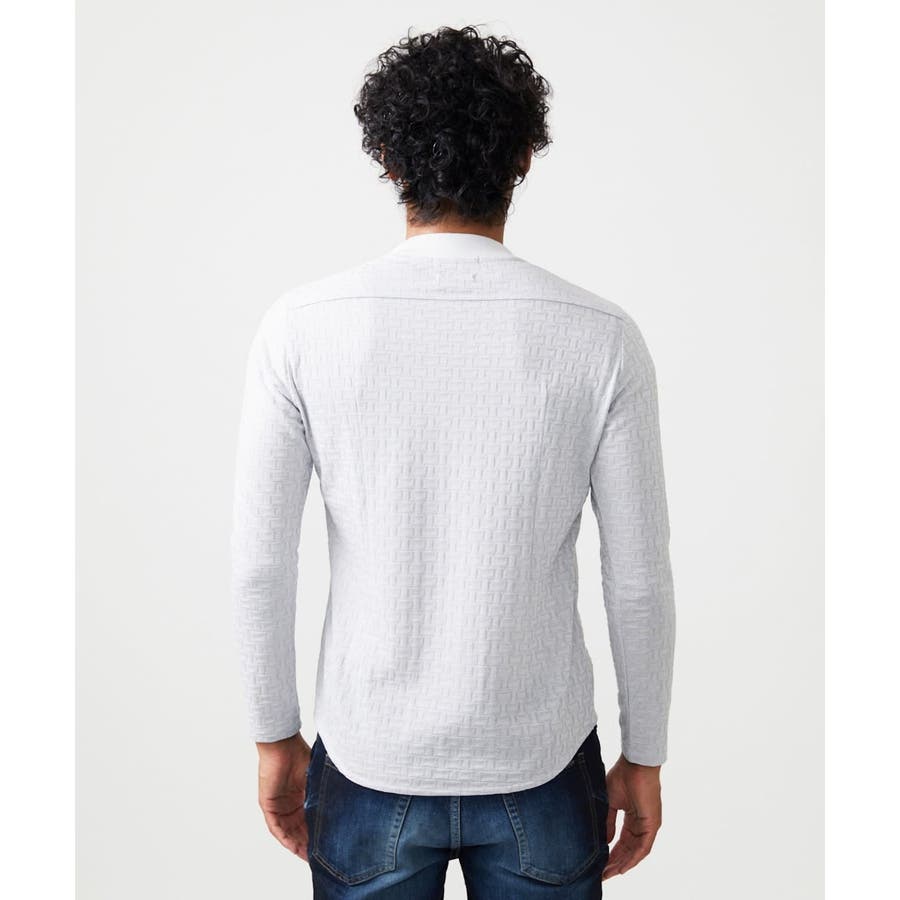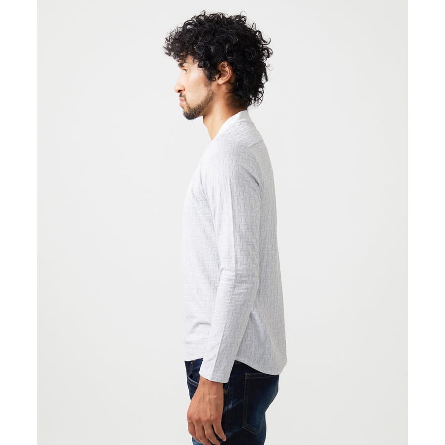 ・ジャケットを羽織った際にも、首元がスマートで清潔感が持続。