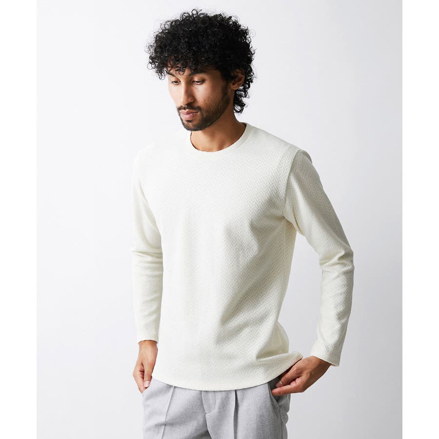 ・中肉に立体感あるジャガード織りが入った素材で、カットソー以上:ニット未満