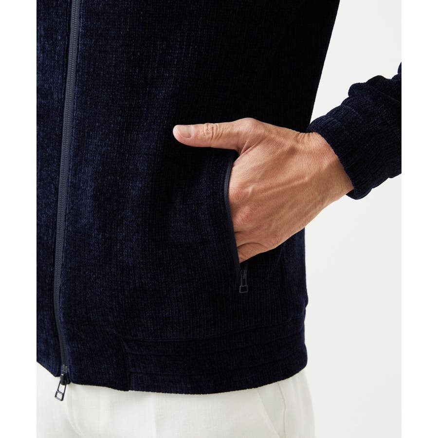 ・身頃前開きとポケットはファスナー裏使い仕様。エレメント(務歯)を見せず、フラットに調和。