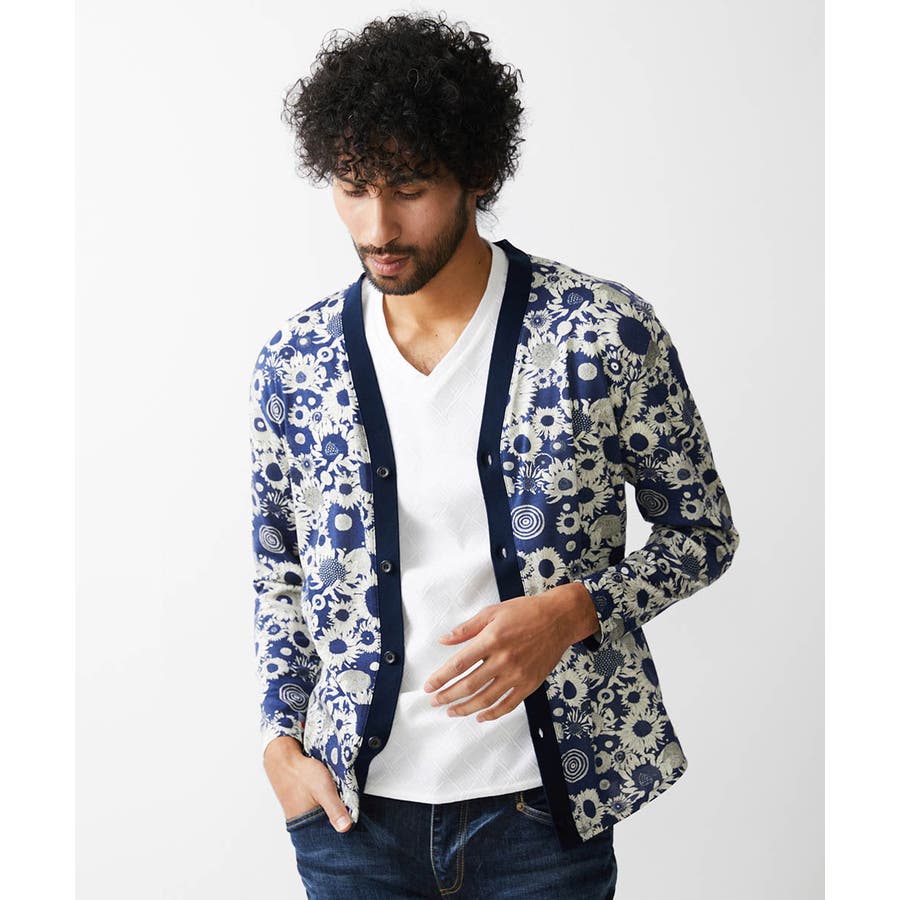 ・Liberty Fabricsを効果的に使用した総柄のカーディガン