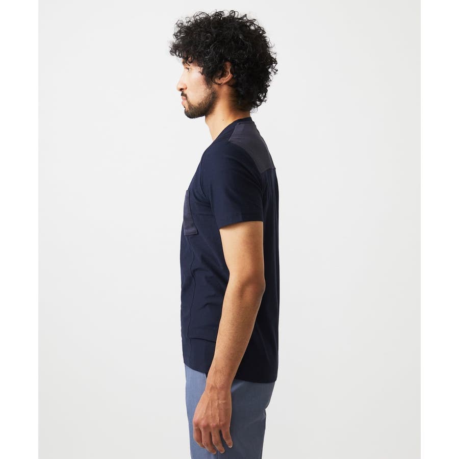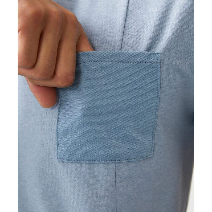 ・ポケットと背ヨークは、ポリエステルを麻のようなナチュラル感とドライな風合いに仕上げたハイゲージジャージ