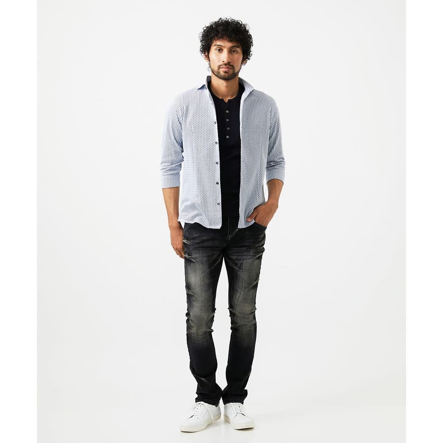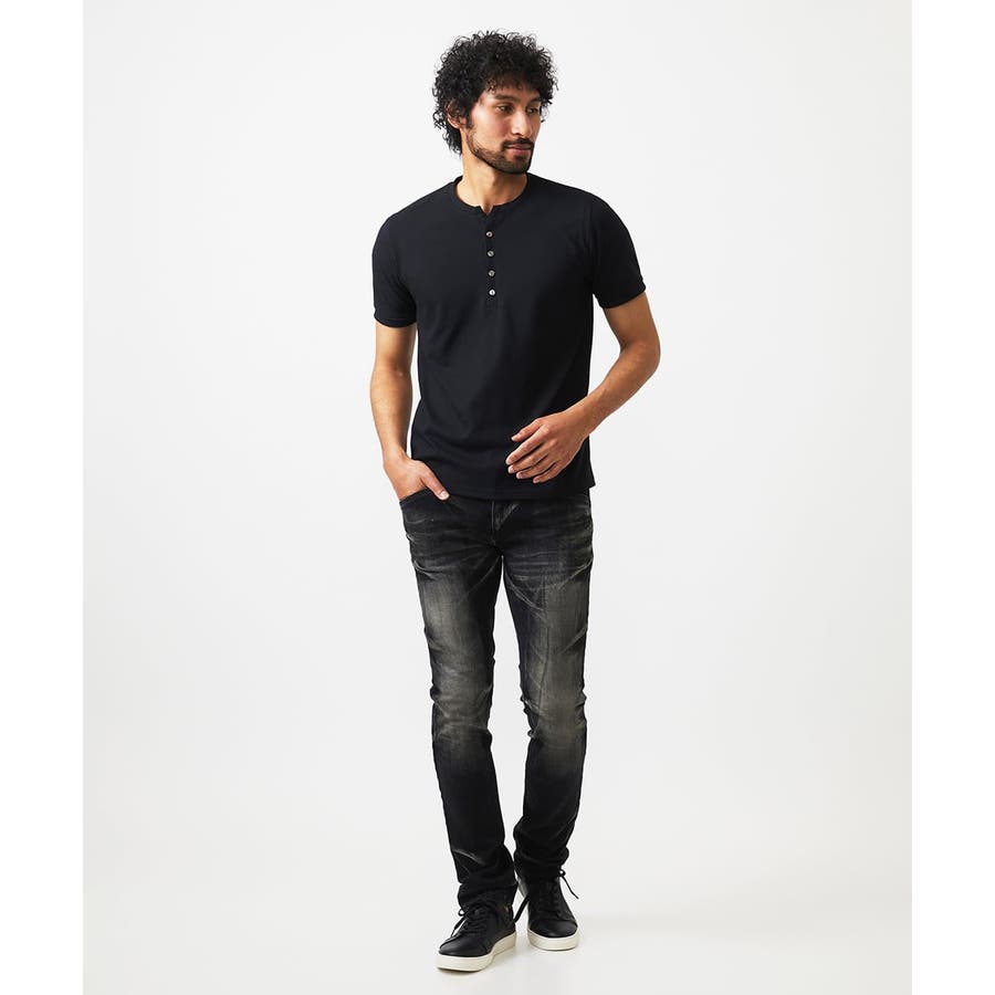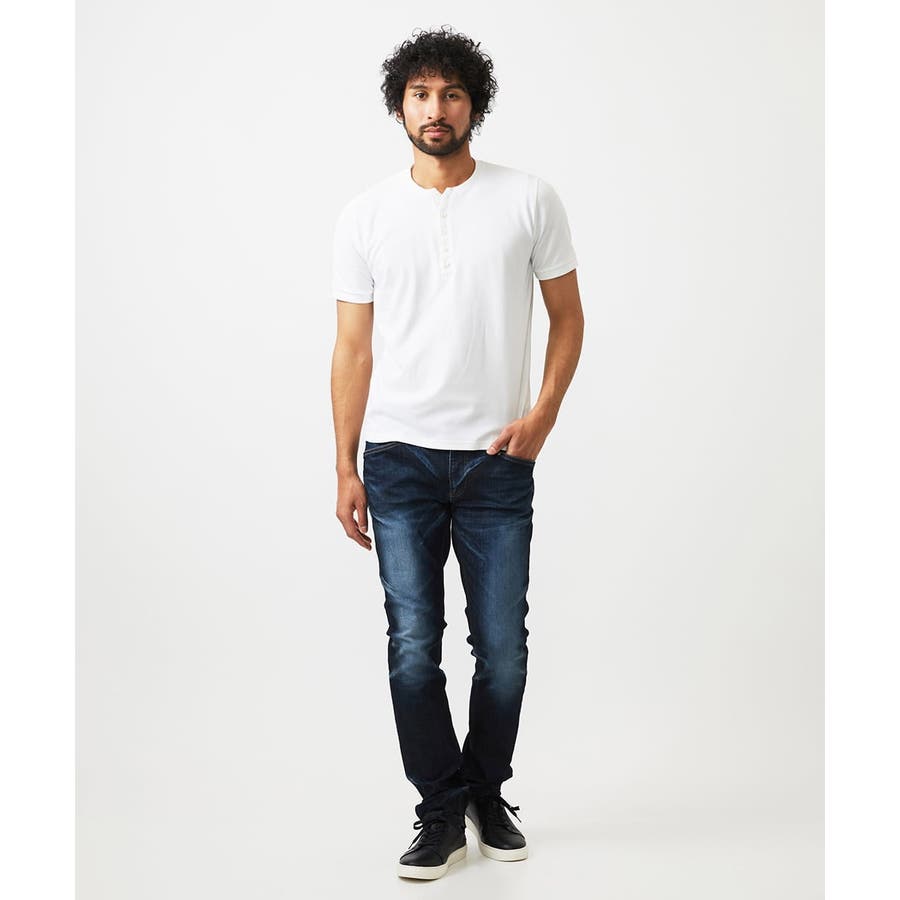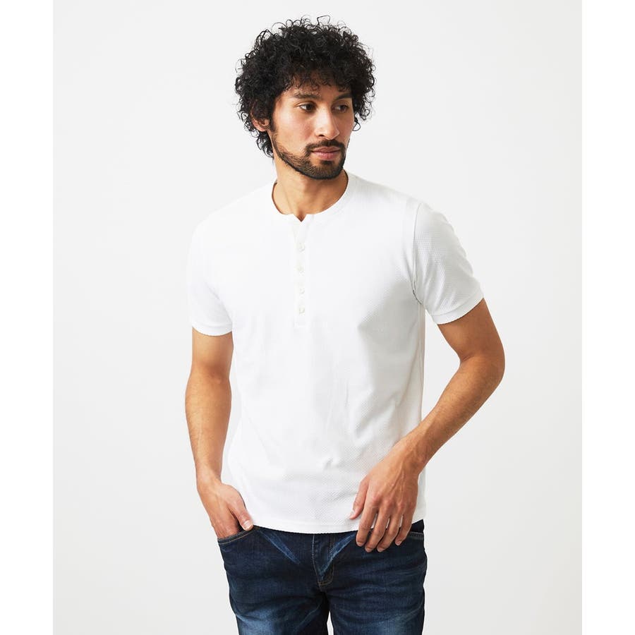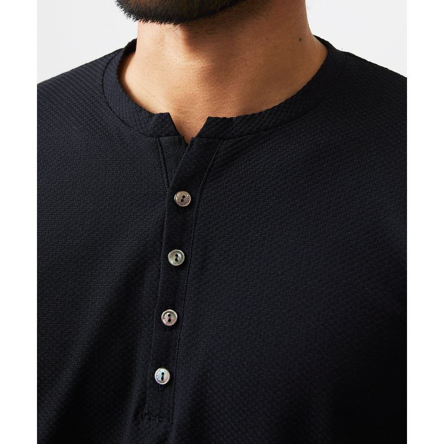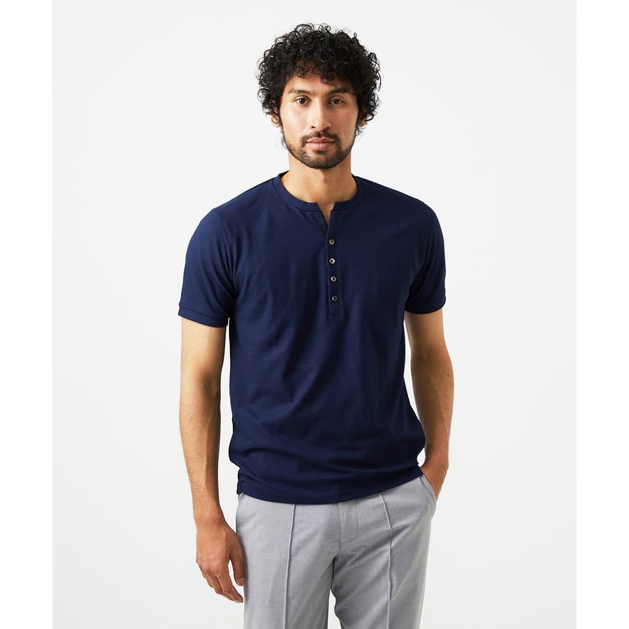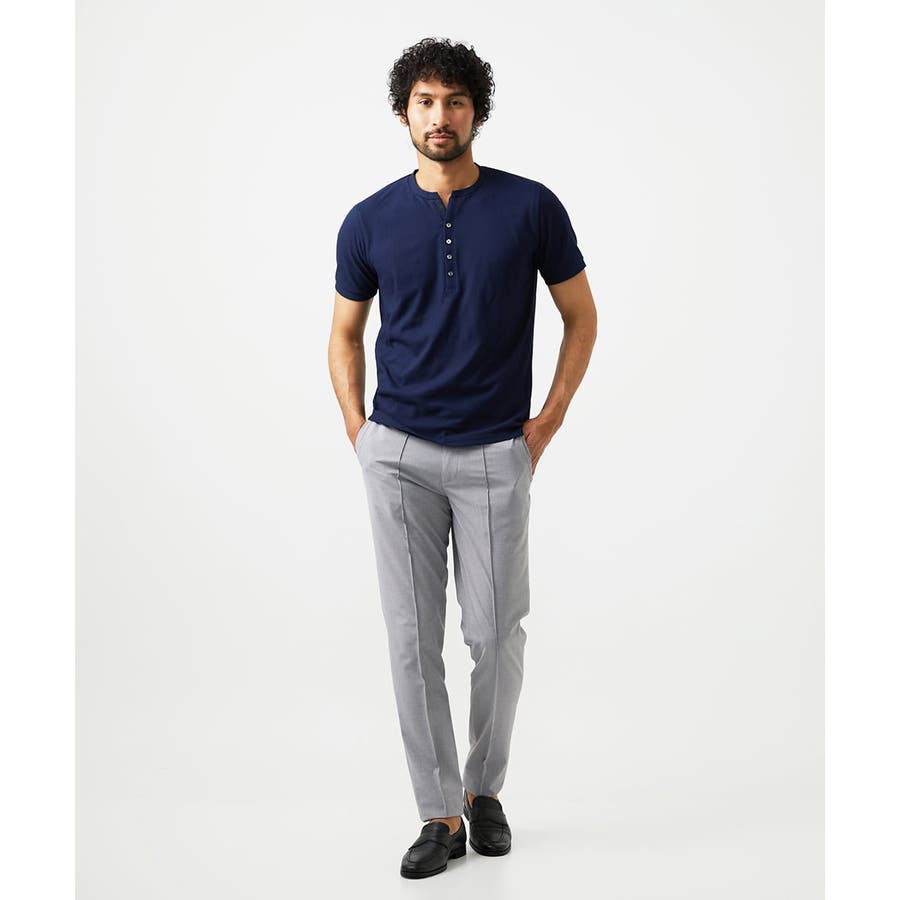 ・ヘンリーネックの開きが首元をすっきり見せ、ジャケットやカーディガンのインナーとしても好相性。