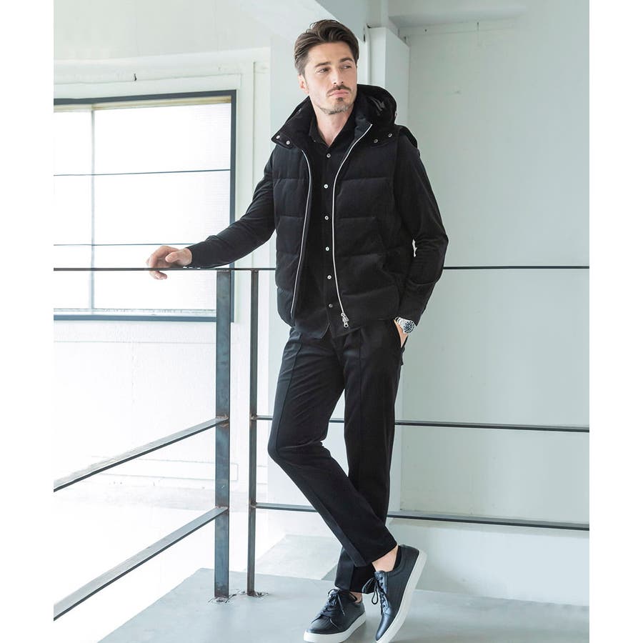 同素材のダウンベスト(商品番号 MNJAA56490)、シャツ(商品番号 MNBAA56230)を合わせれば、セットアップスタイルに