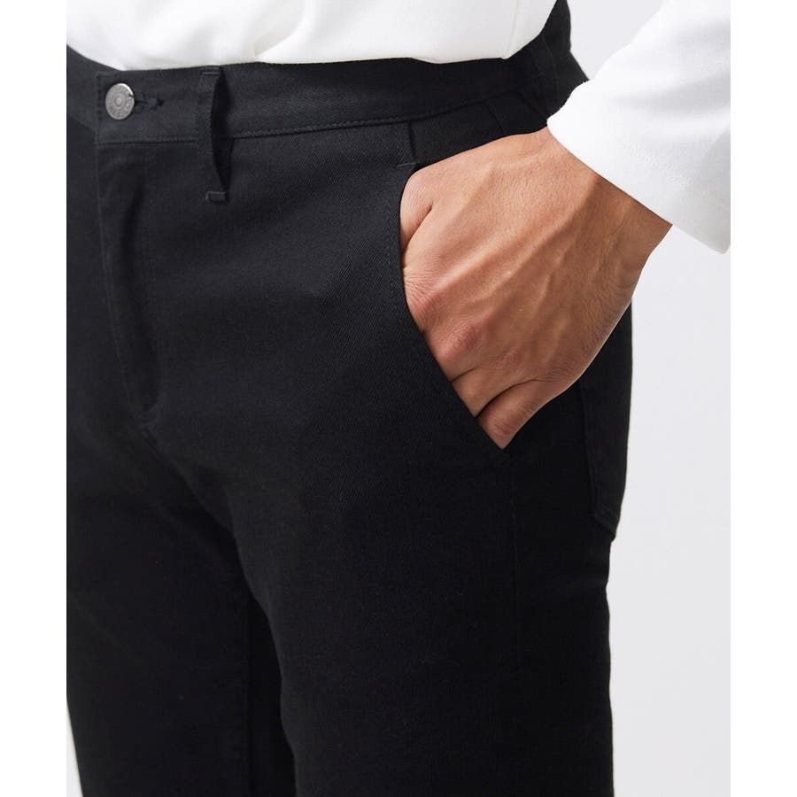 ・コ―ディネートのバリエーションを広げる、裾に向かって細くなるテーパードシルエットのソリッドジーンズ