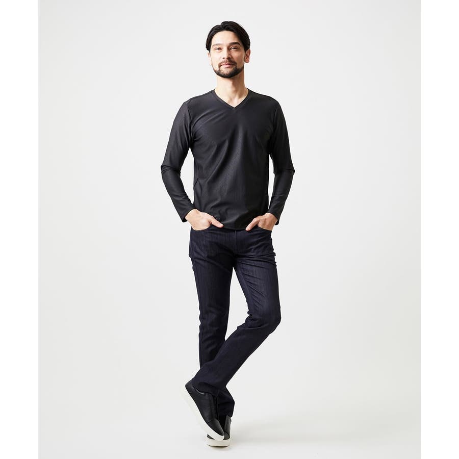 ・上品な素材感により、デニム調ながらカジュアルに見えすぎず、ジャケット合わせでビジネスカジュアルとしても活躍。