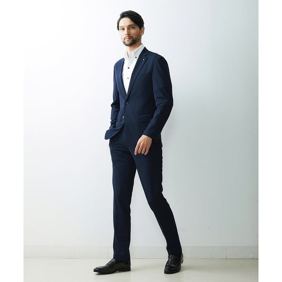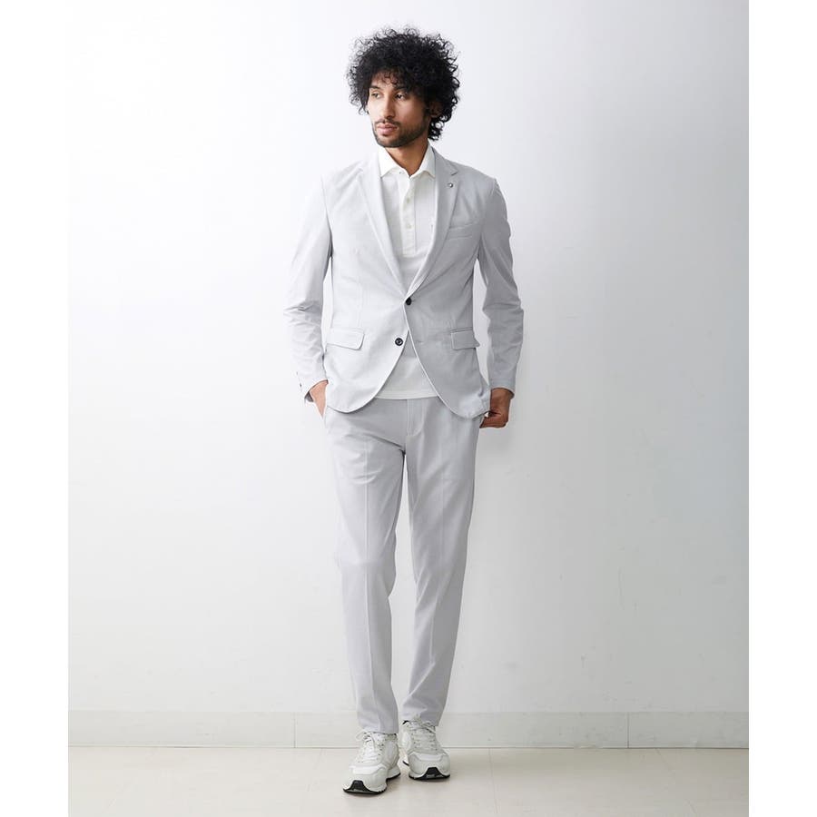 同素材のハイスペックジャケットを合わせれば、セットアップスタイルに