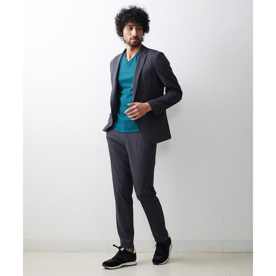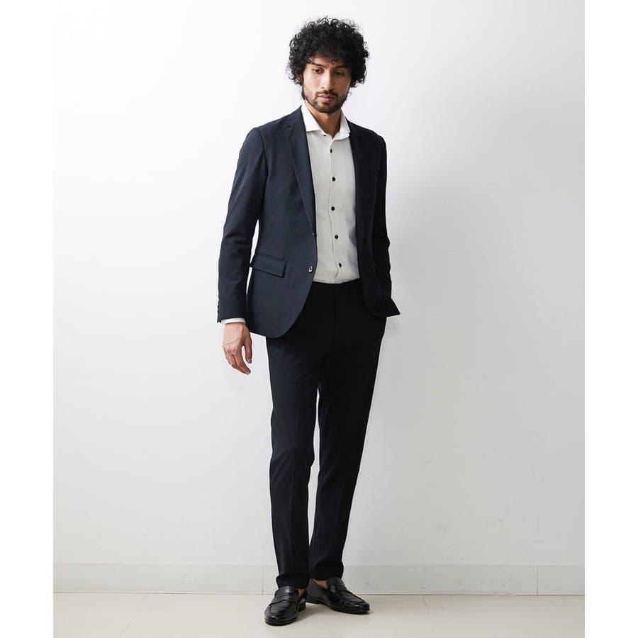 同素材のハイスペックジャケットを合わせれば、セットアップスタイルに
