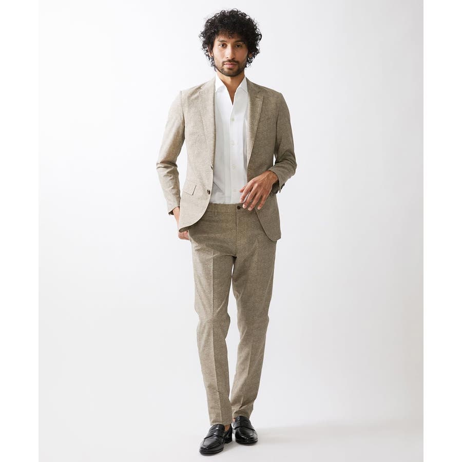 同素材のジャケット(商品番号 MNDJX10400)を合わせれば、セットアップスタイルに