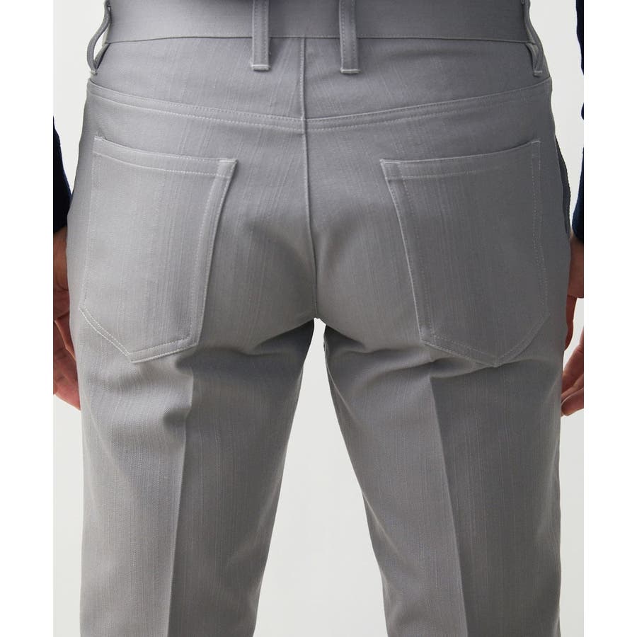 スラックスの持つエレガントな前身と5ポケの持つカジュアルな後身を掛け合わせたカジュアルスラックスデザイン