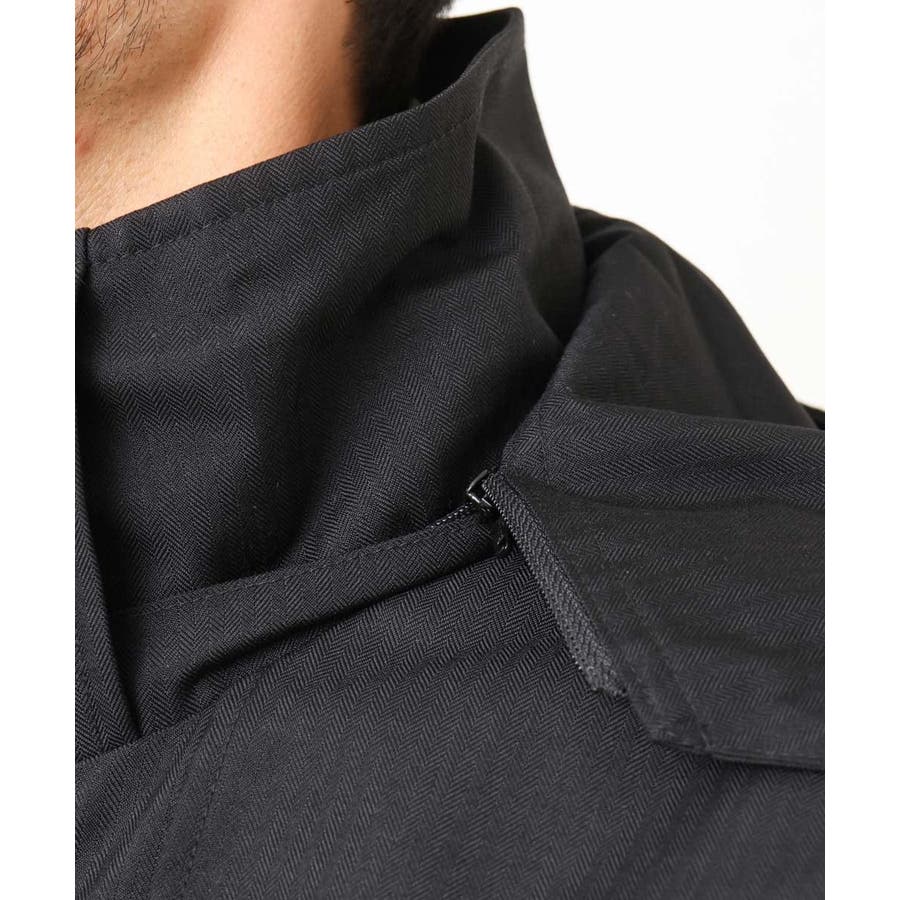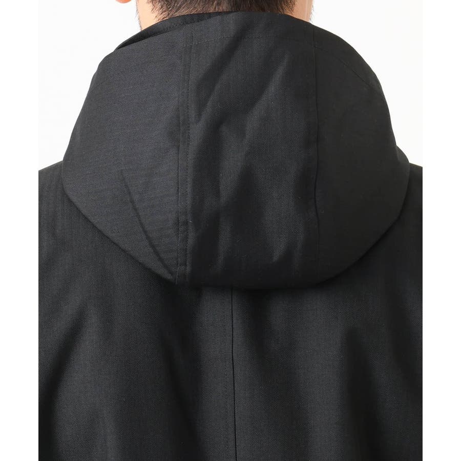 ・取り外し可能なフードを備え、外せばスタンドカラーとしても着用可能。