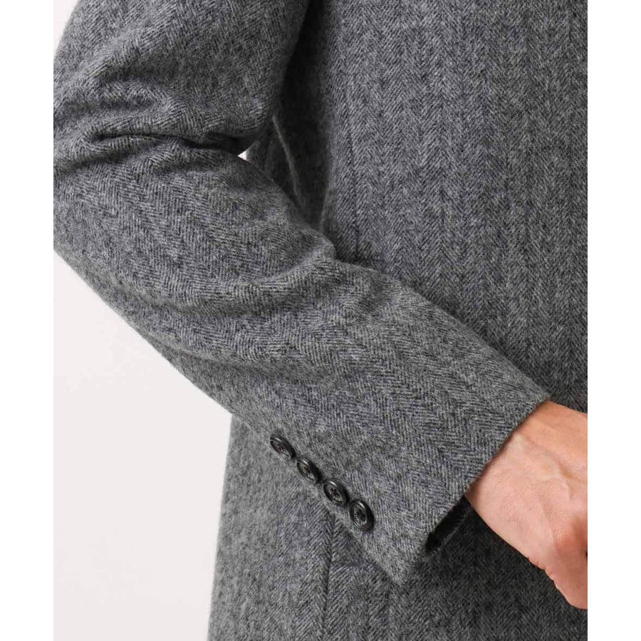 ・伝統と技術が息づく環境で丁寧に生産されたこの生地は、クラシックなヘリンボーン柄にビーバー仕上げを施すことで、奥行きのある表情と上品な光沢感を備えています。
