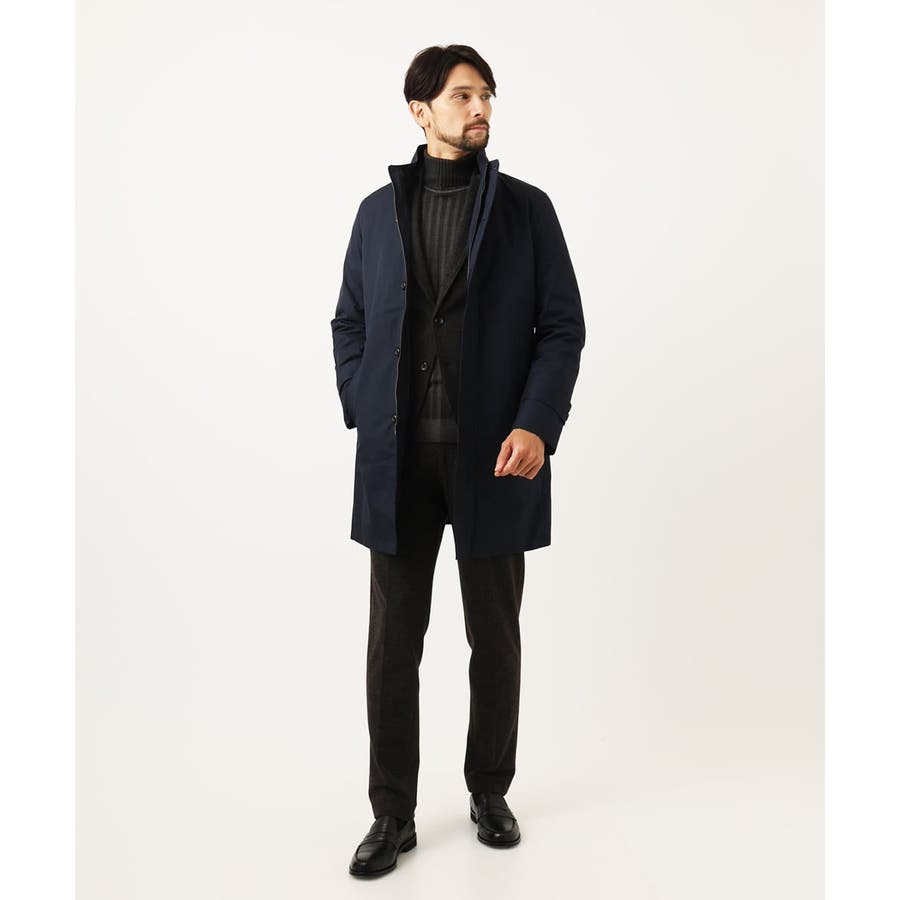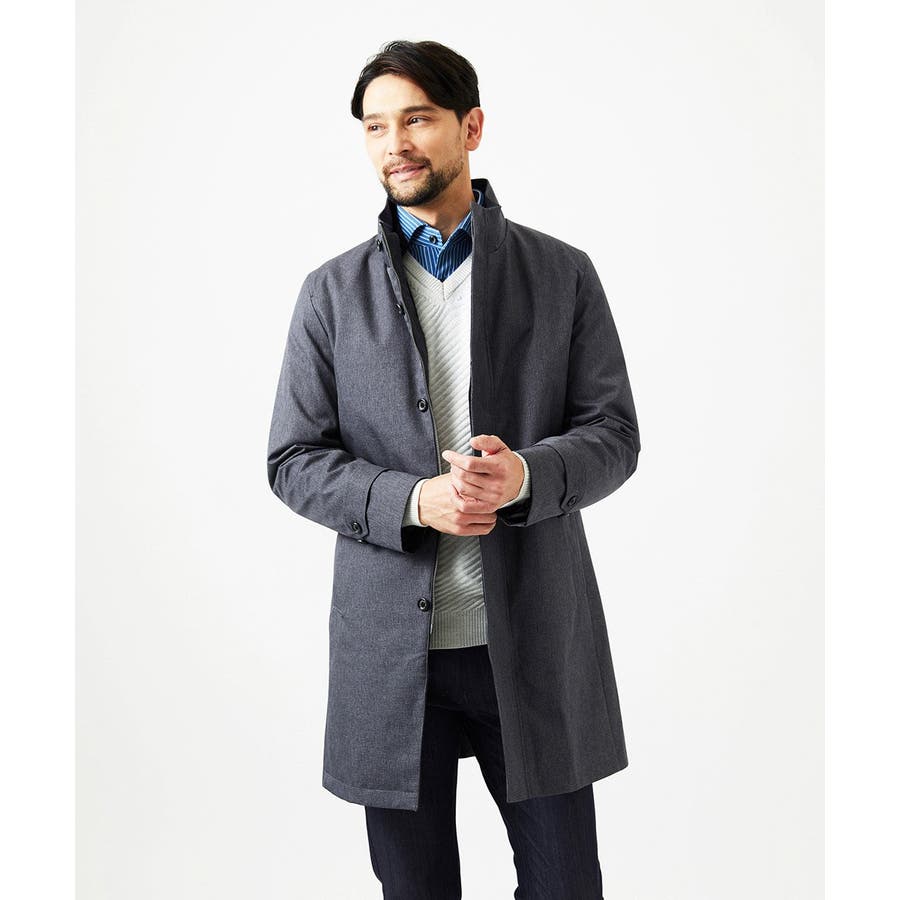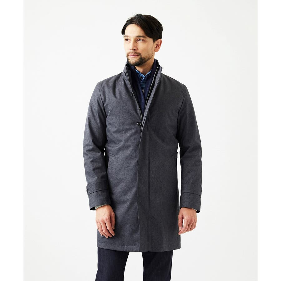 ・2WAY仕様のスタンドカラーロングコート。 ・スタンドカラーはやや低めに設計し、首元の収まりがよく着やすさを向上。