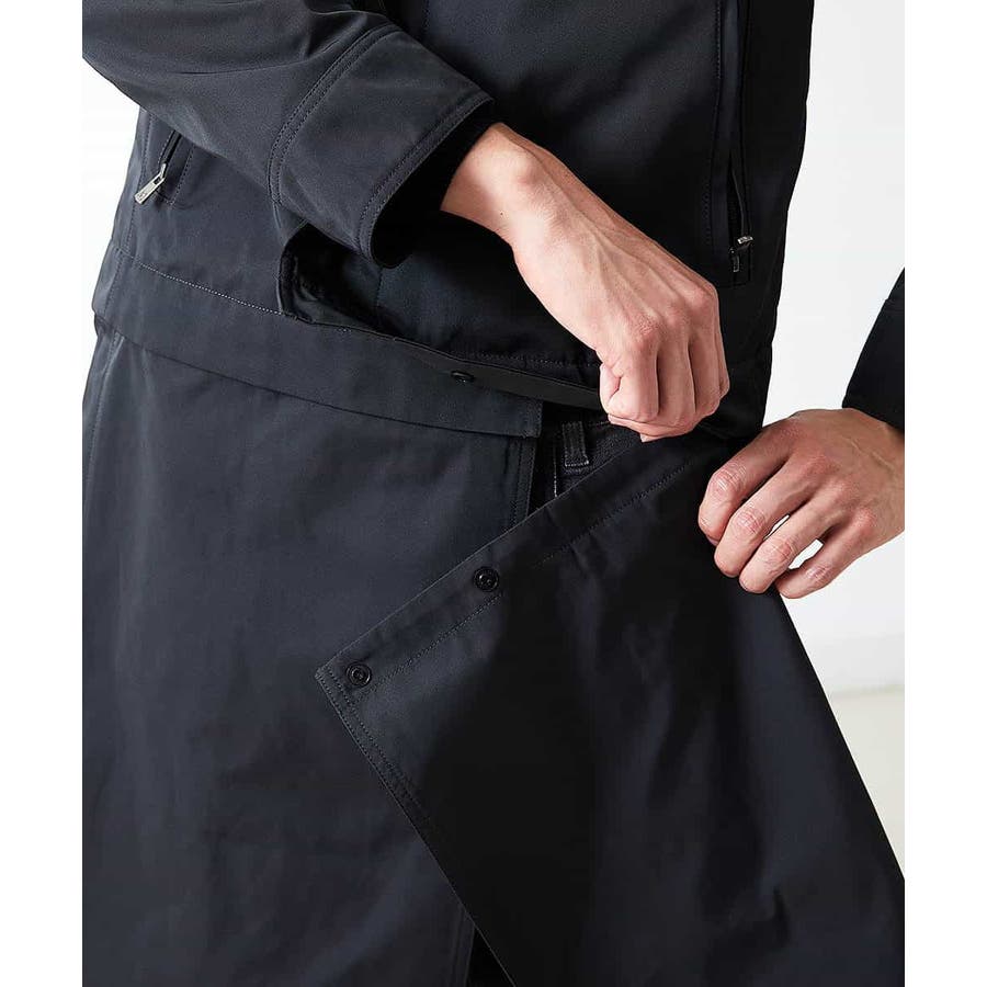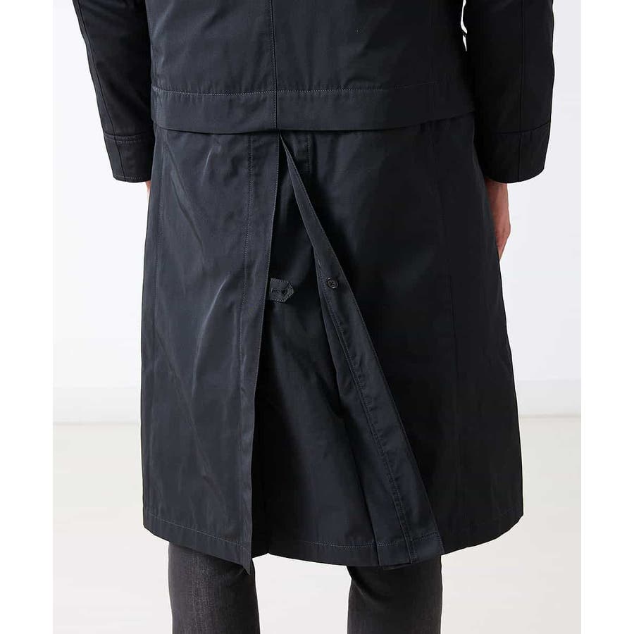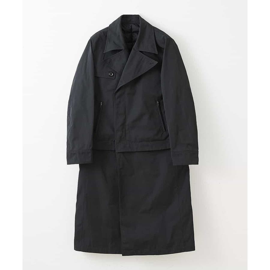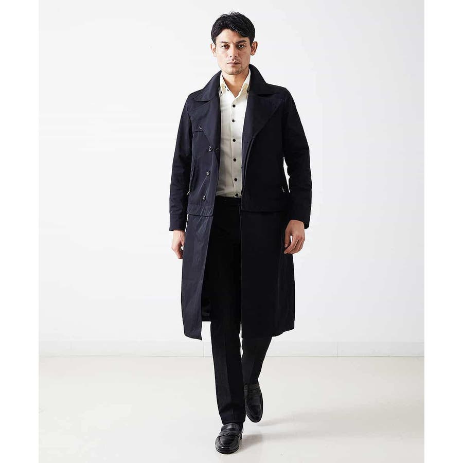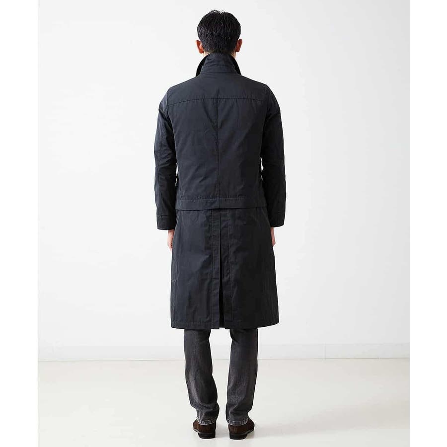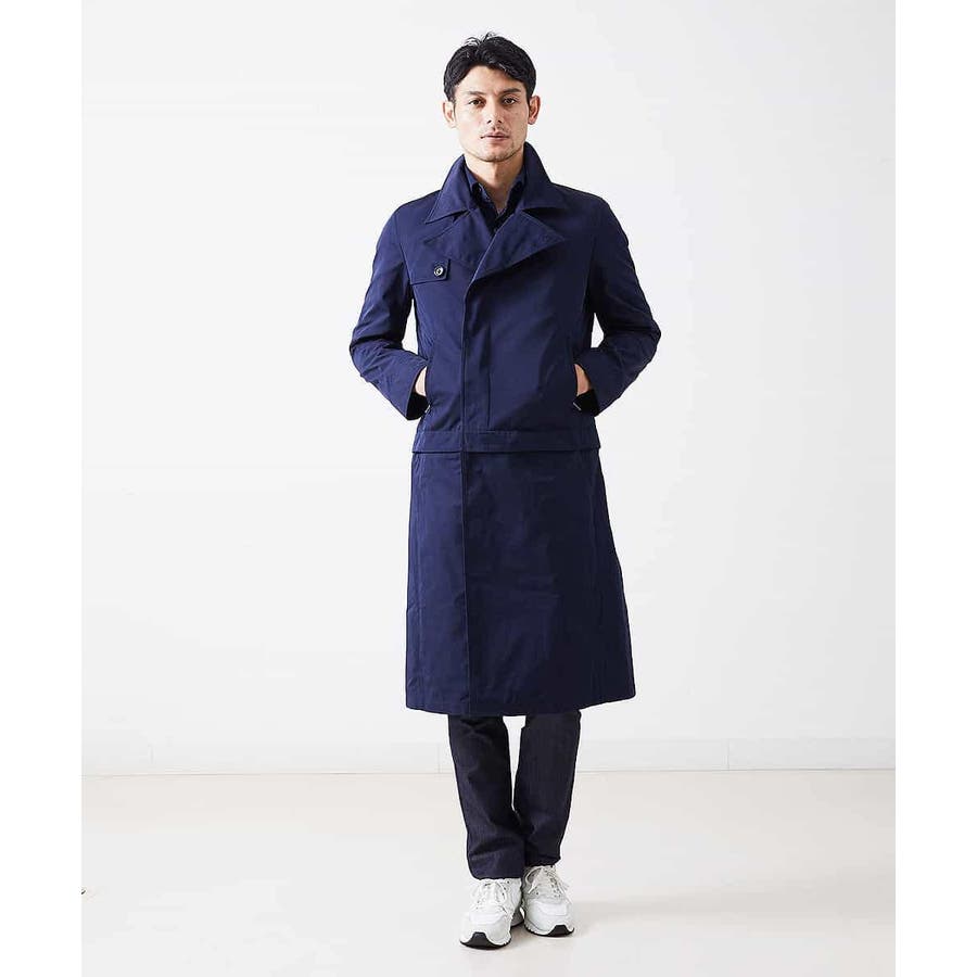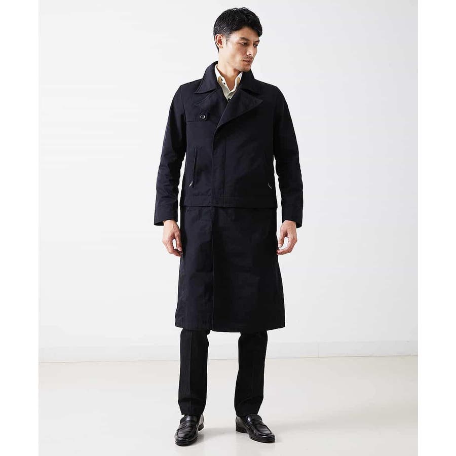 ダブルブレストコートの裾部分がスナップ釦で着脱し、ライダースブルゾンとして着用できます
