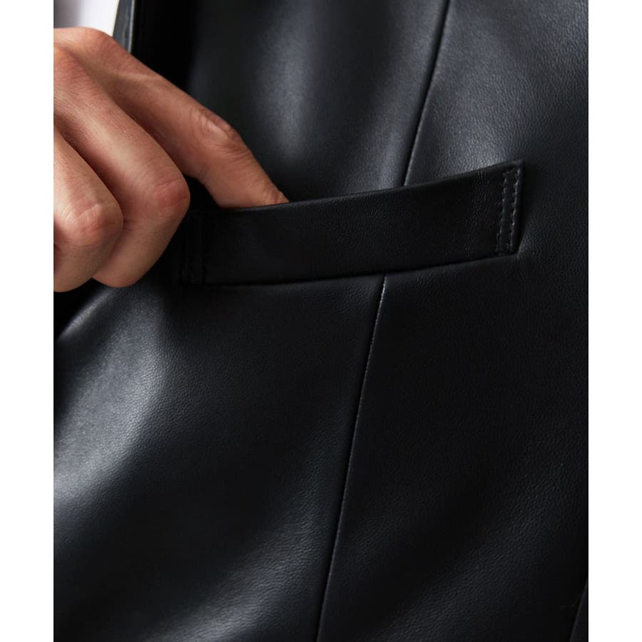 ・ポケットまわりやフロント端に手縫い風ステッチを施し、レザーの艶と陰影に立体感を加え、輪郭をシャープに引き立てます。