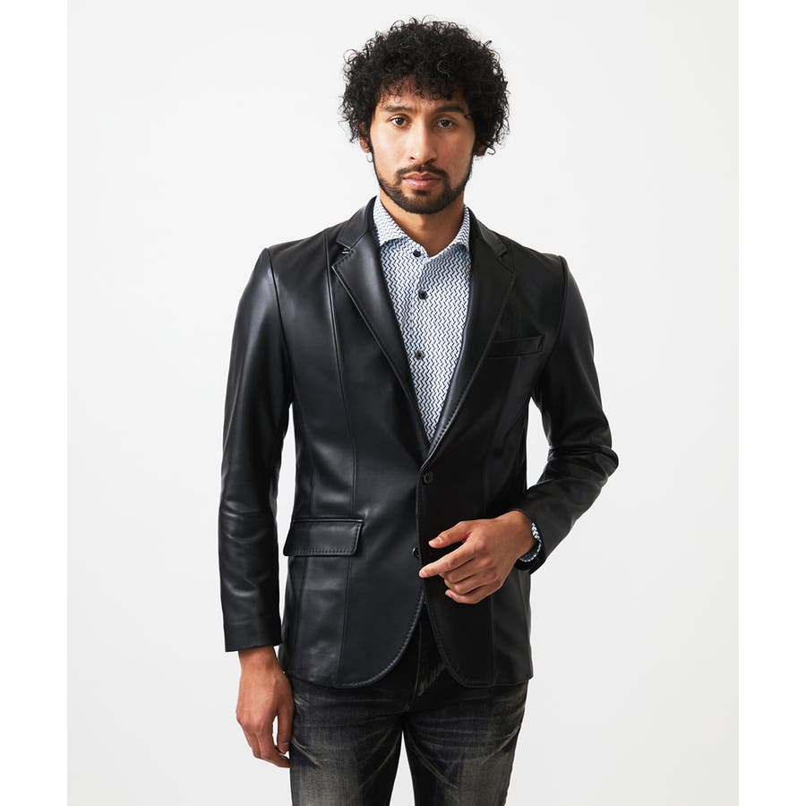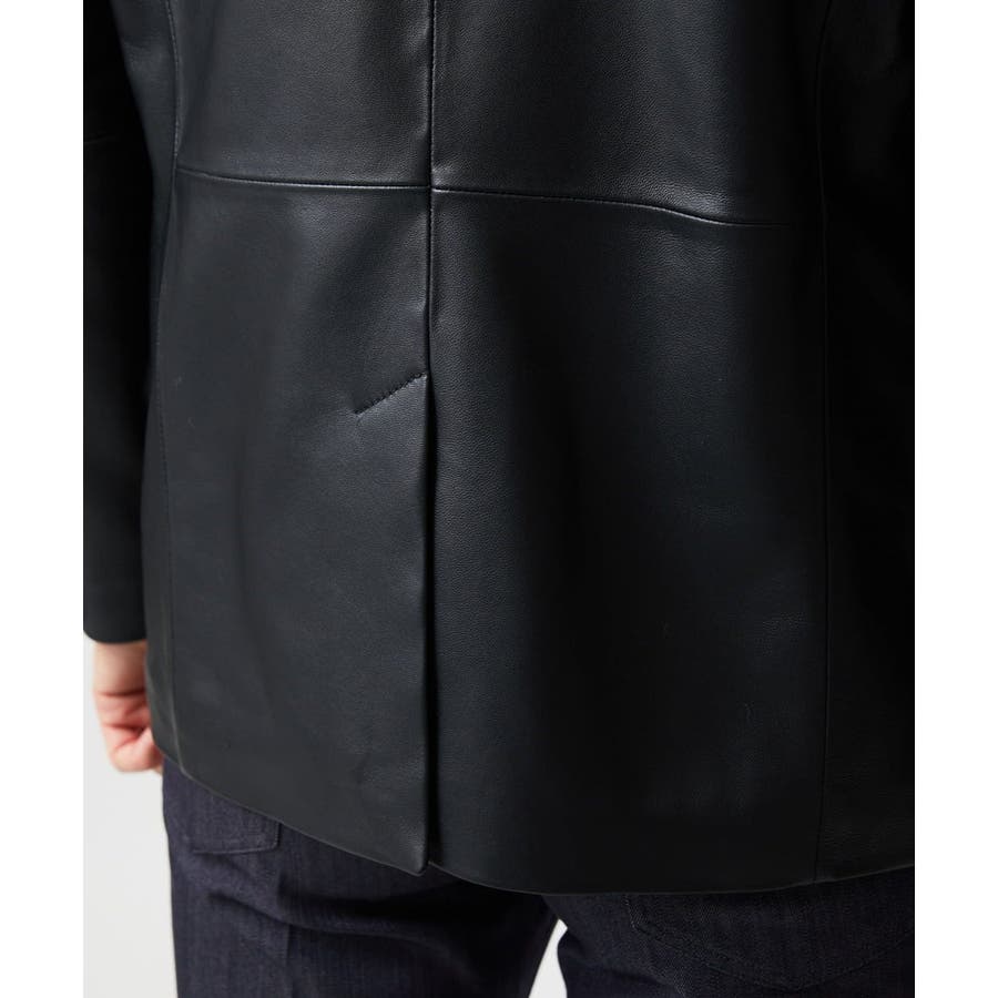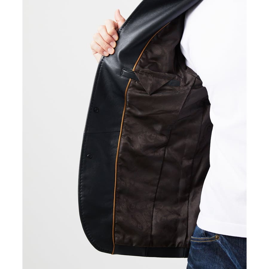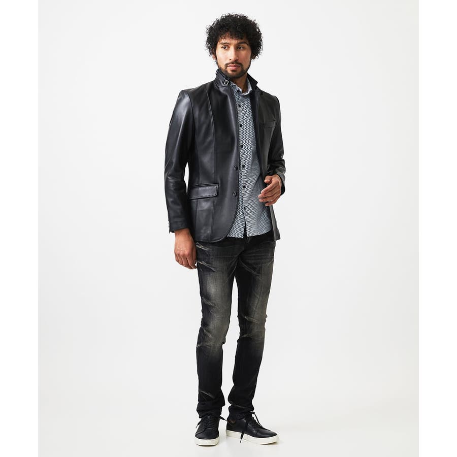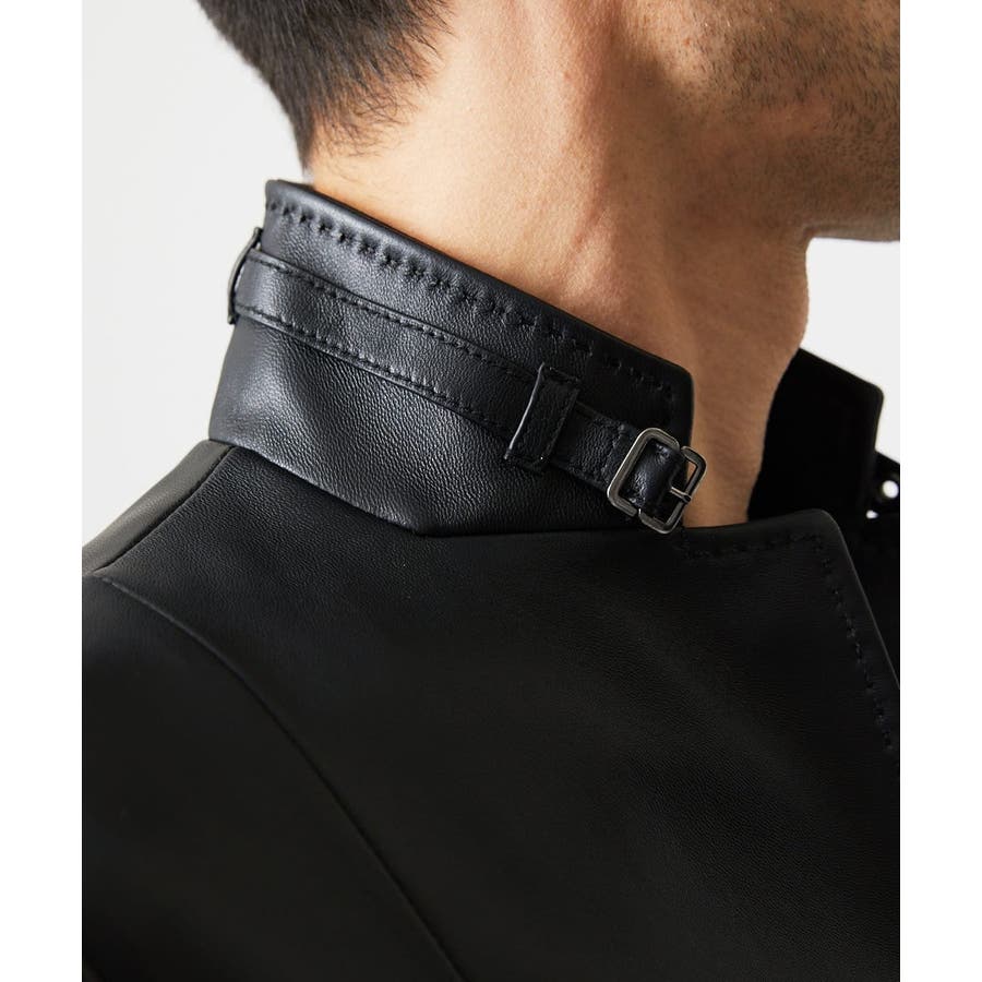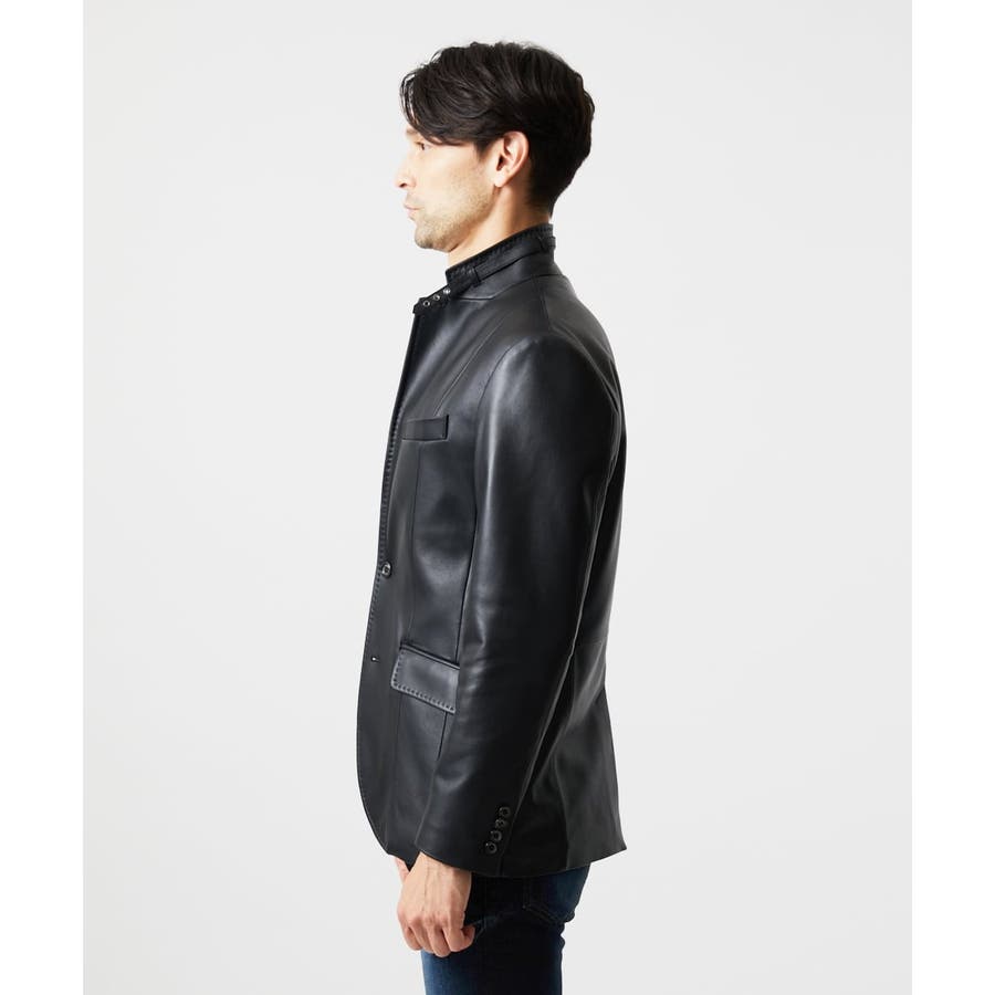 ・柔らかさと上質感を兼ね備えたラムレザーを使用し、レザー特有の厚みがあっても、襟の返りが美しく決まるようにパターンを調整。