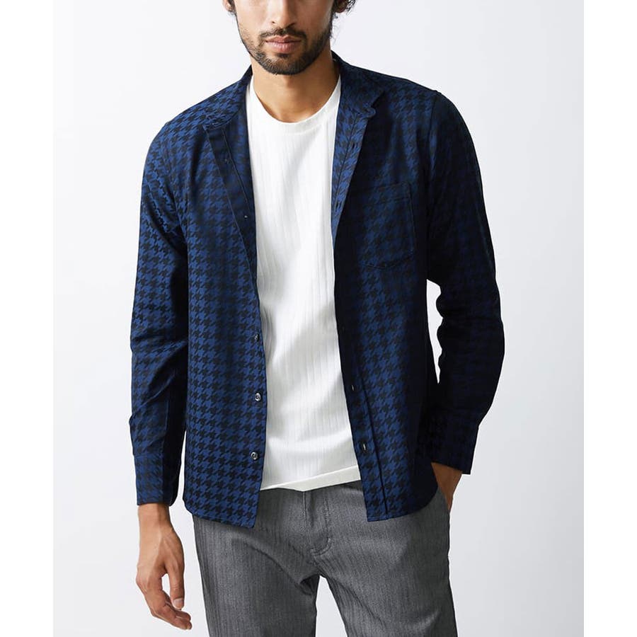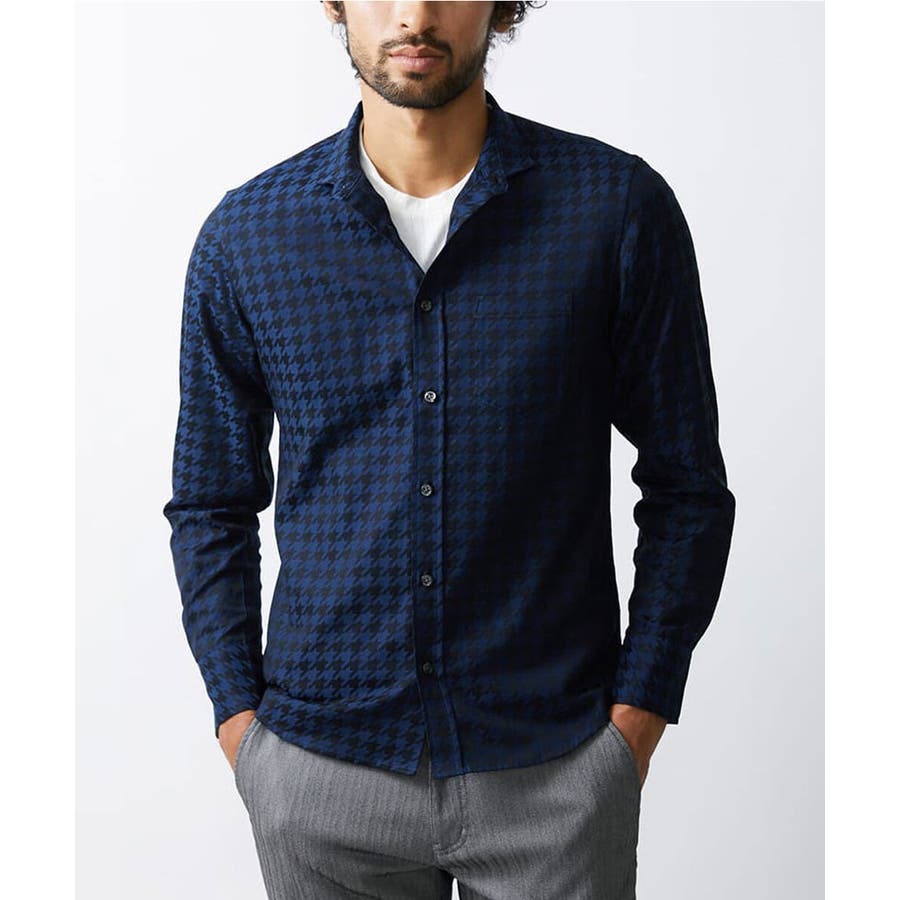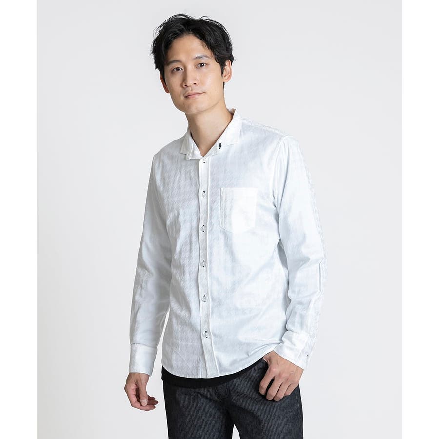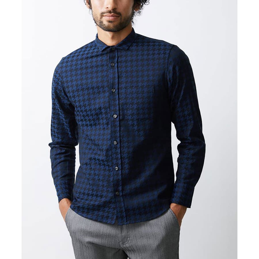 立体感のあるチドリジャガード柄が目を引くオシャレな長袖シャツ。