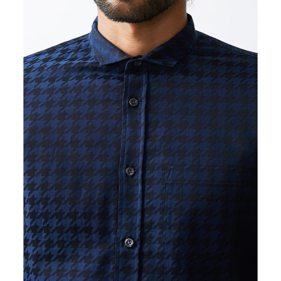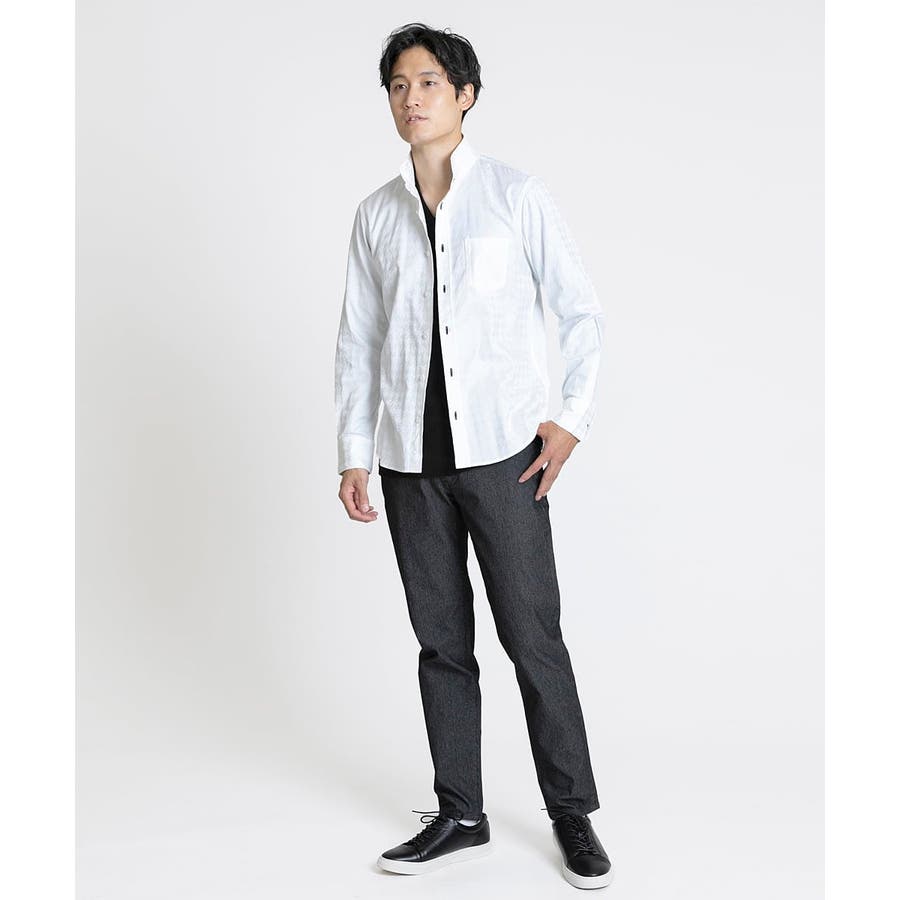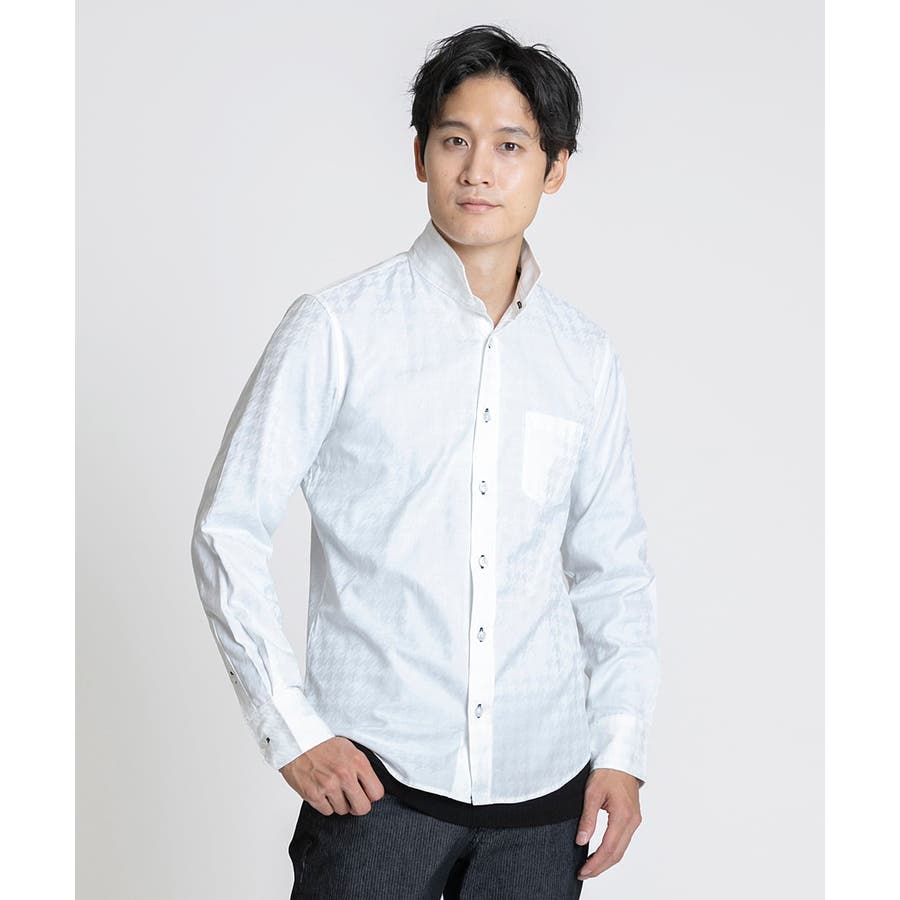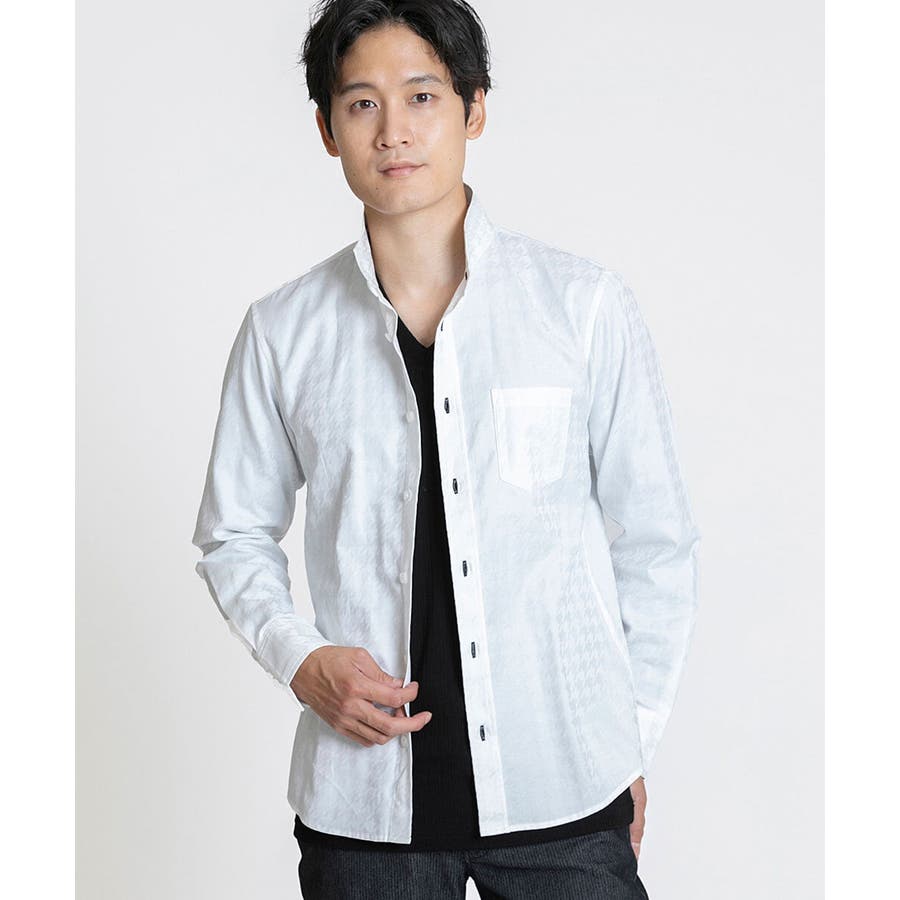 立体感のあるチドリジャガード柄が目を引くオシャレな長袖シャツ。