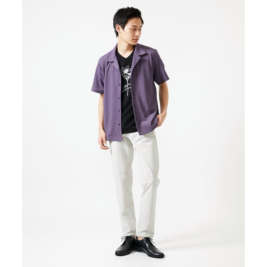 ・オープンカラーで衿もとスッキリ見えるデザイン。