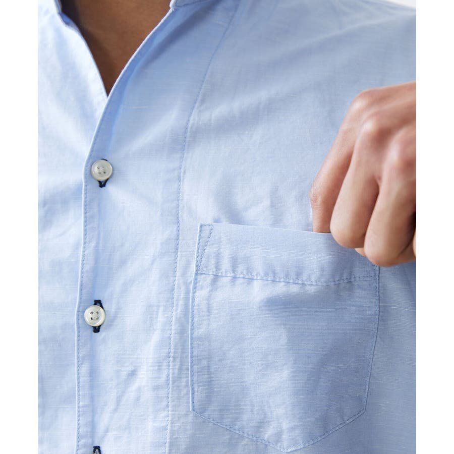 上質原料である細番手のスーピマコットン糸と「ハードマンズリネン」糸を交織した素材を使用