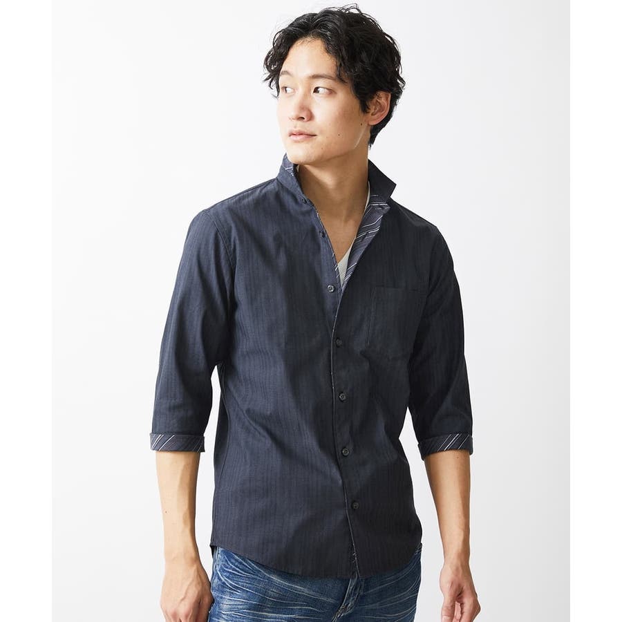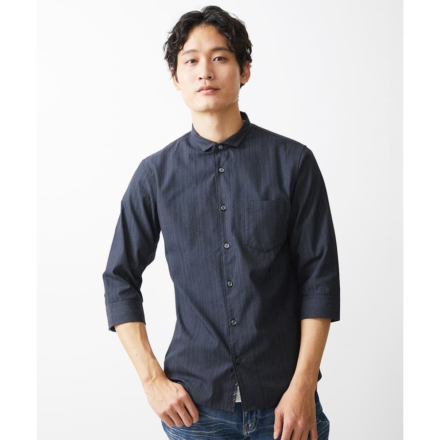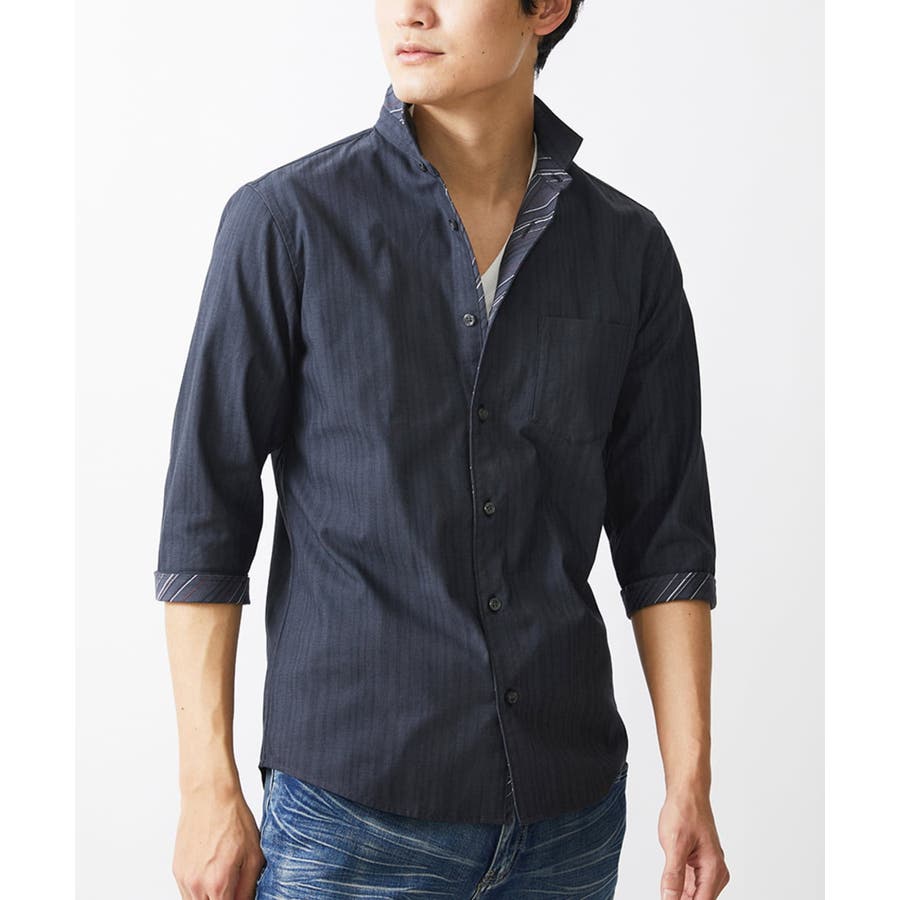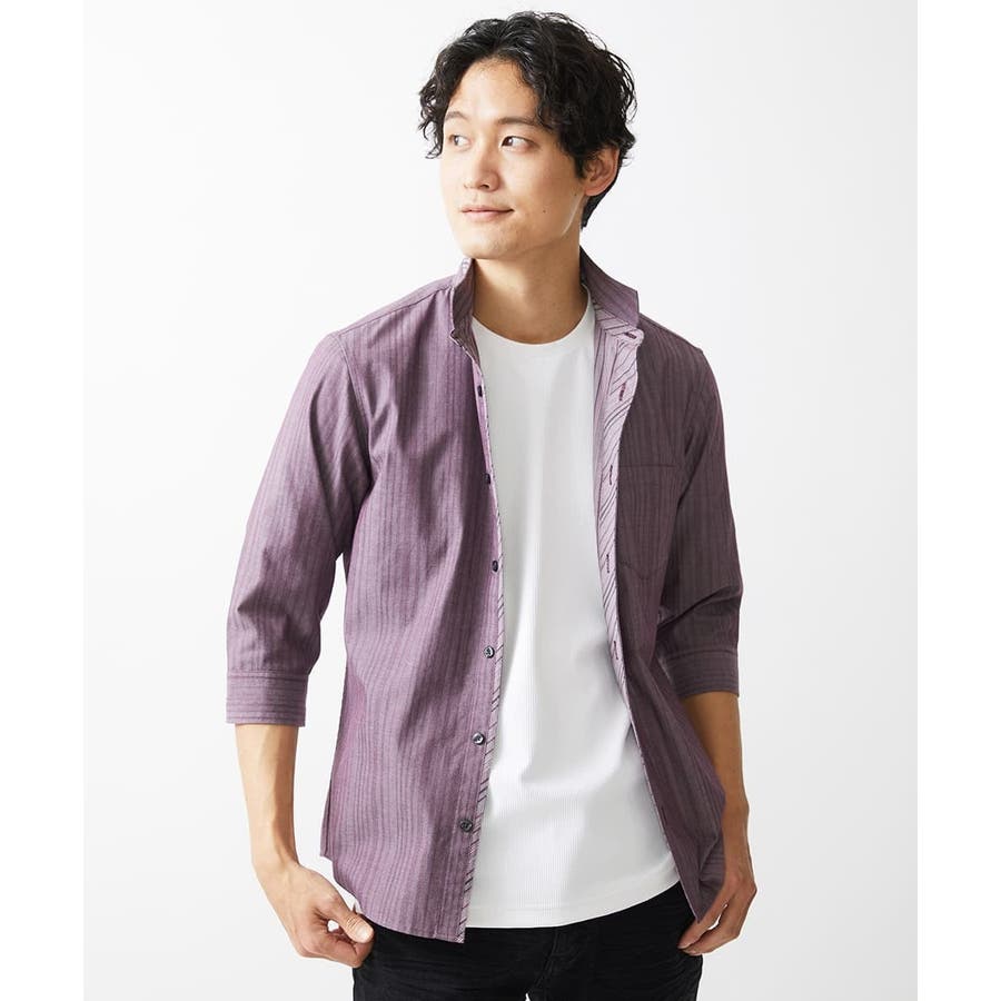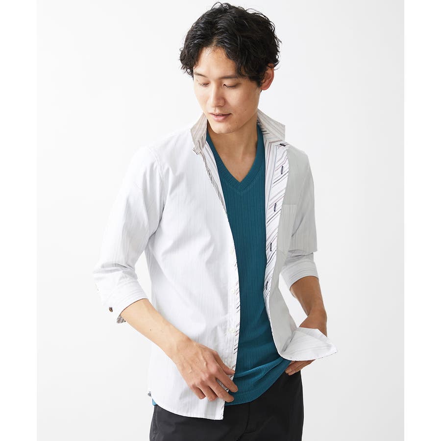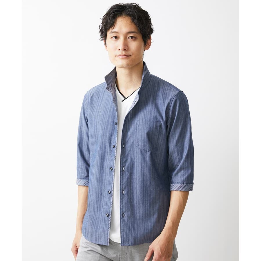 【ON/OFF対応】七分袖リバーストライプシャツ