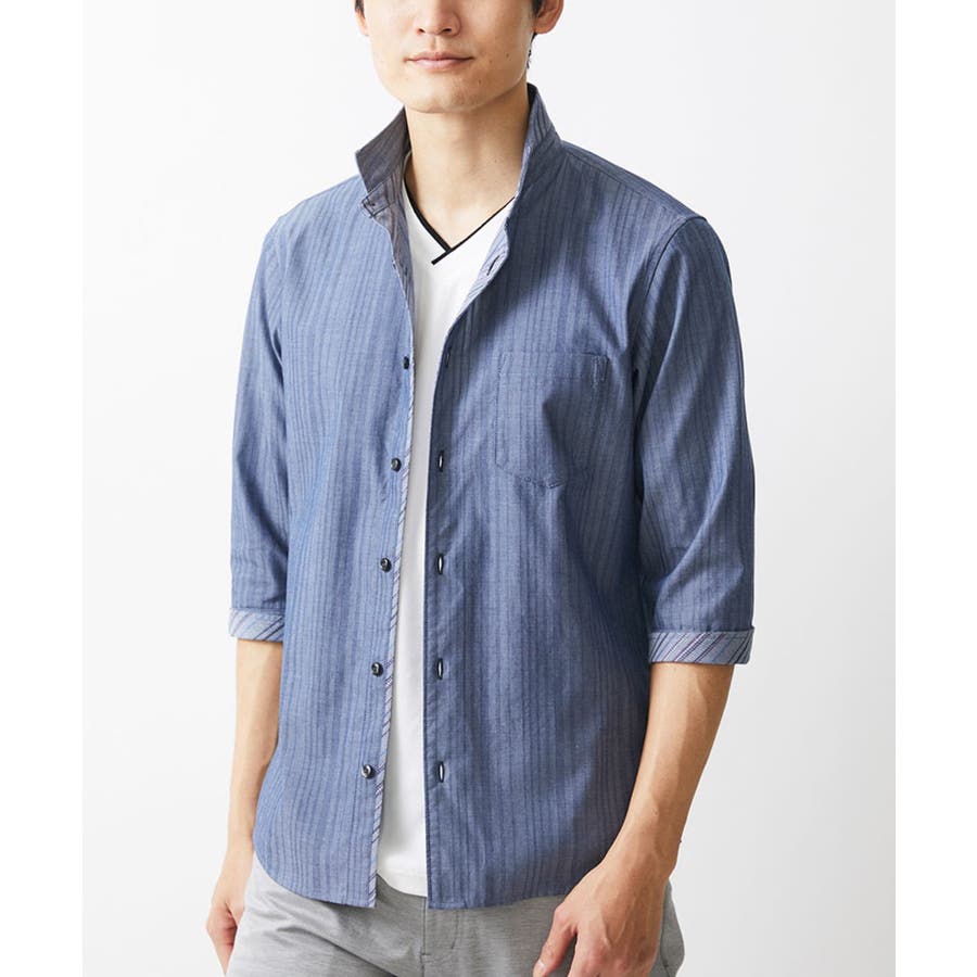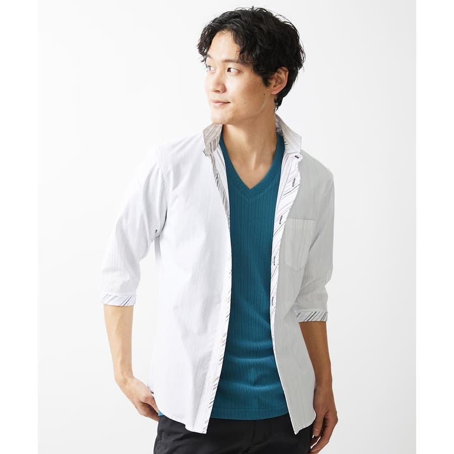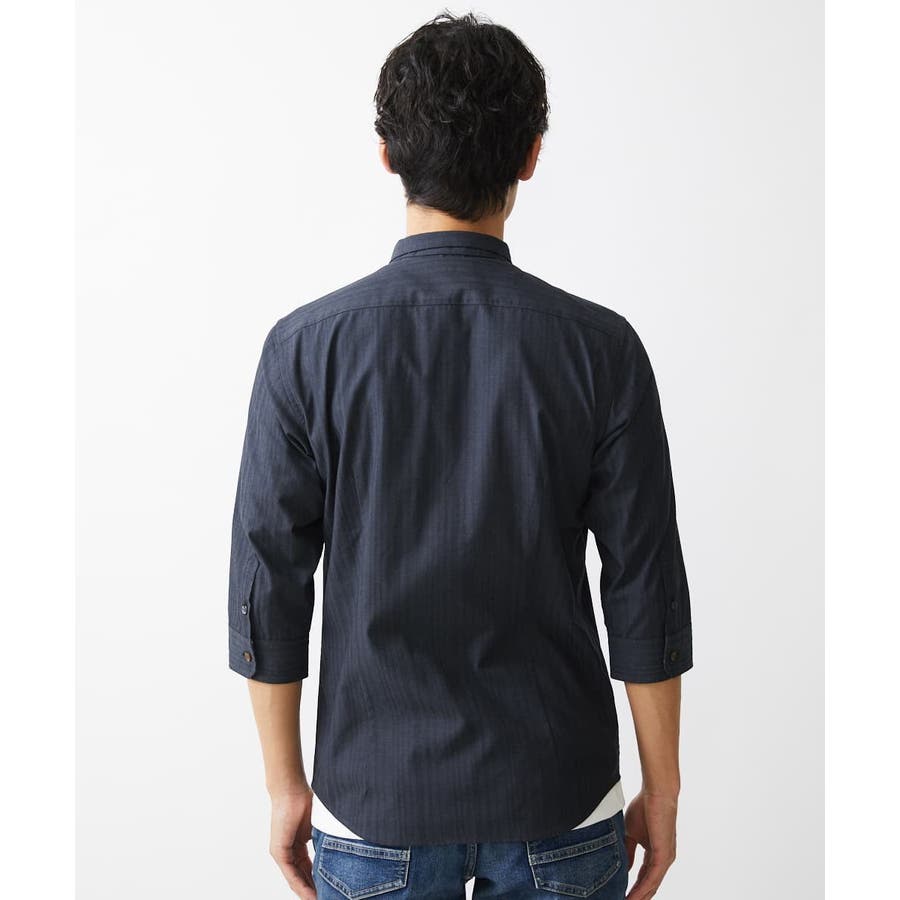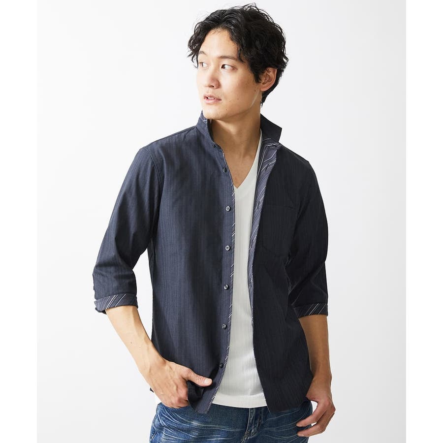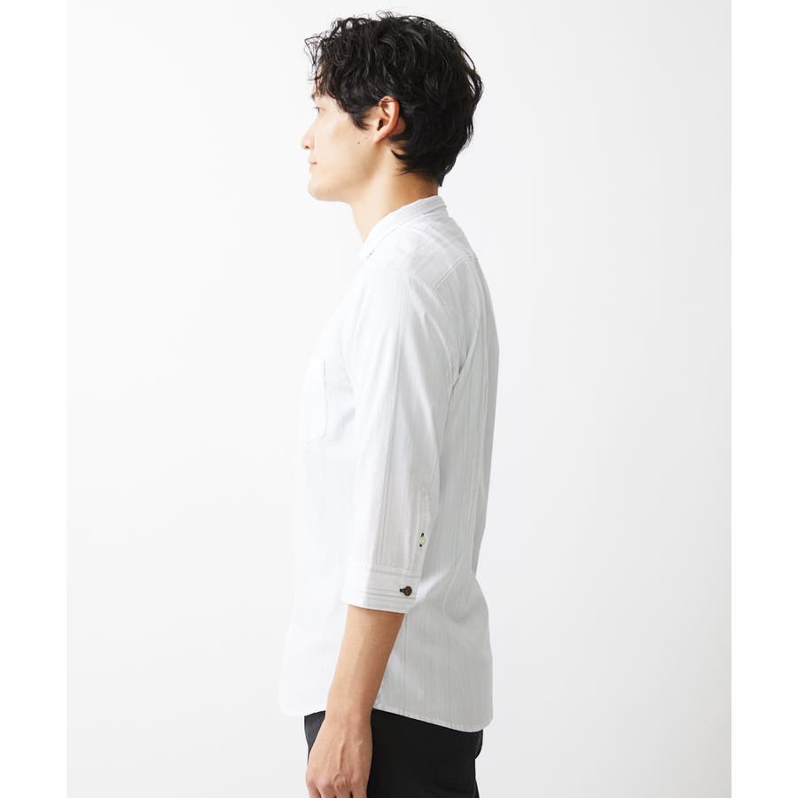 【ON/OFF対応】七分袖リバーストライプシャツ