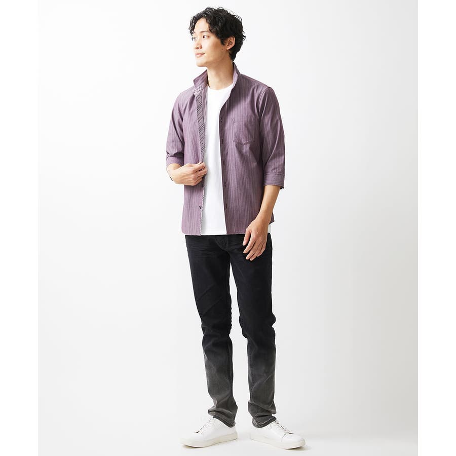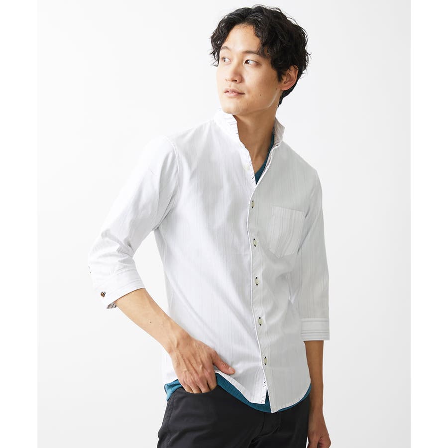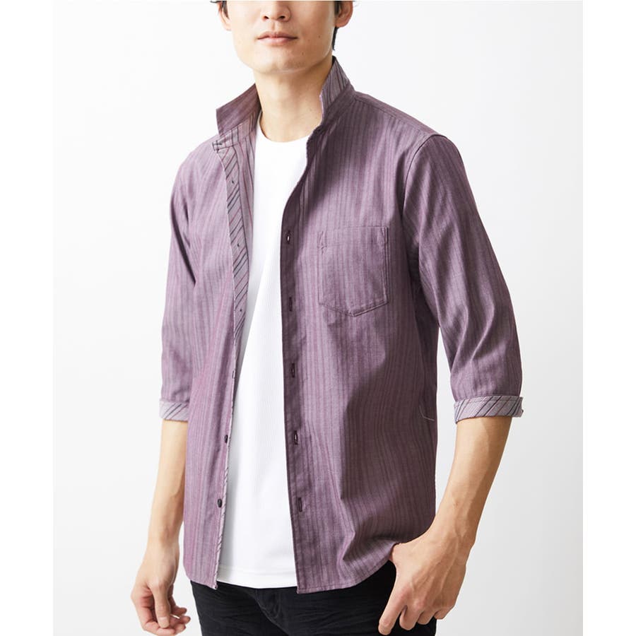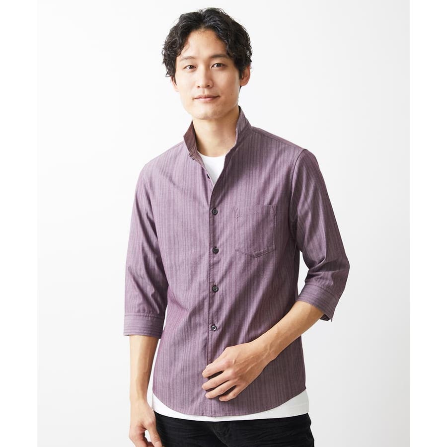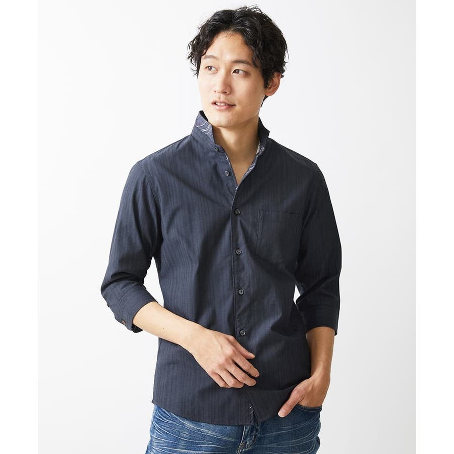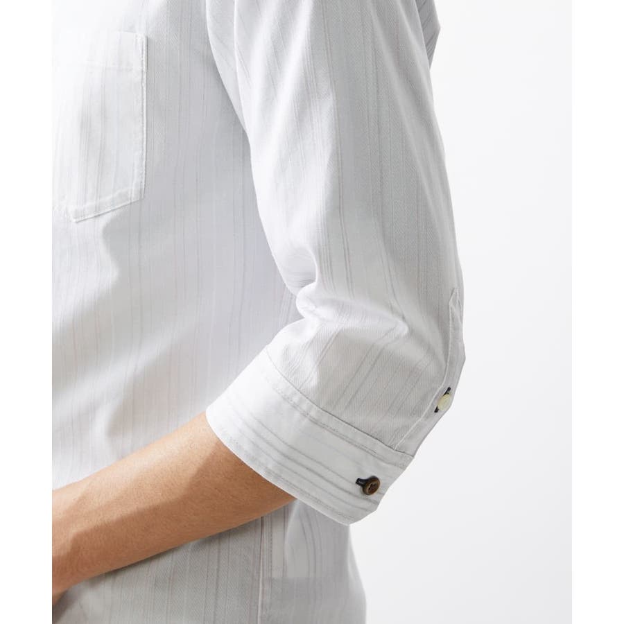 【ON/OFF対応】七分袖リバーストライプシャツ