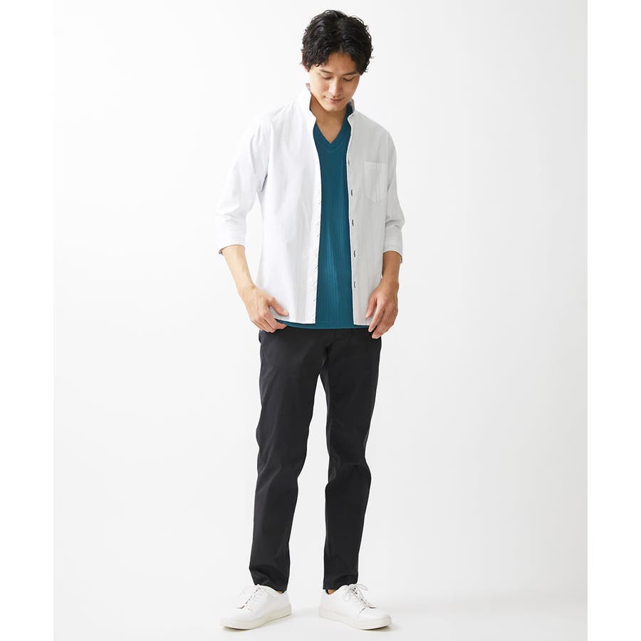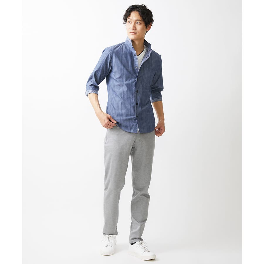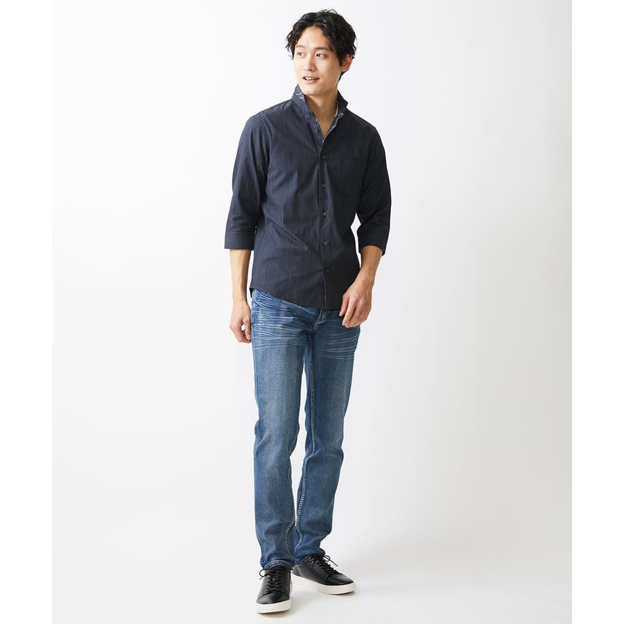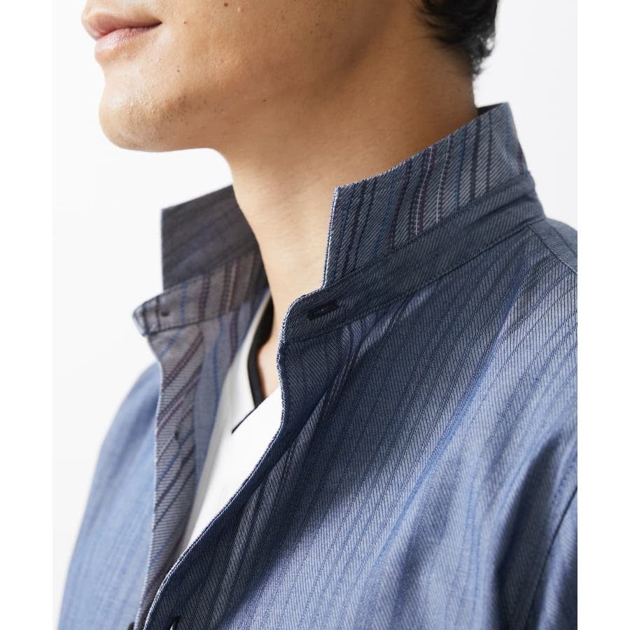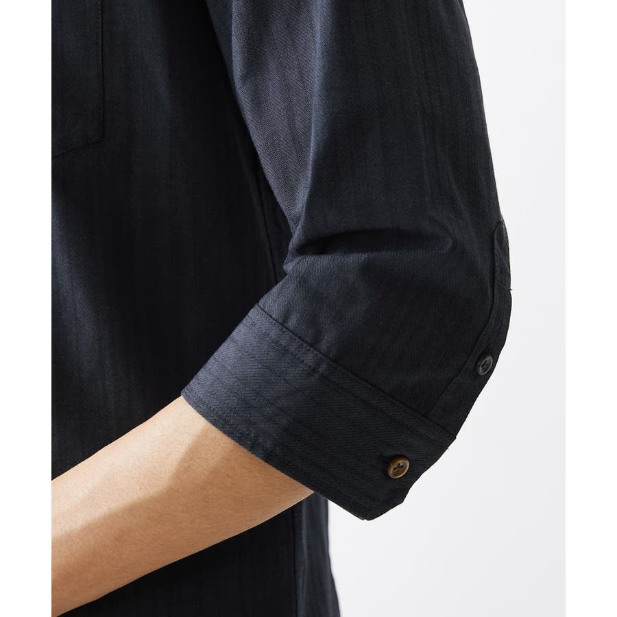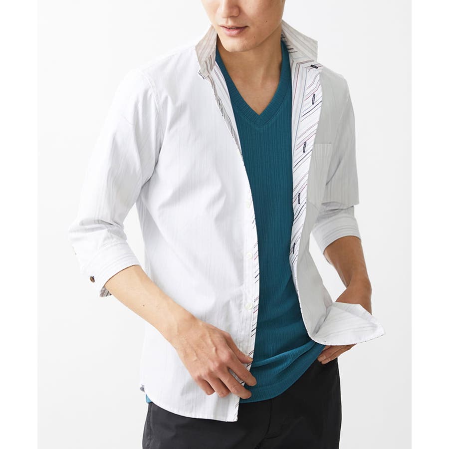 【ON/OFF対応】七分袖リバーストライプシャツ