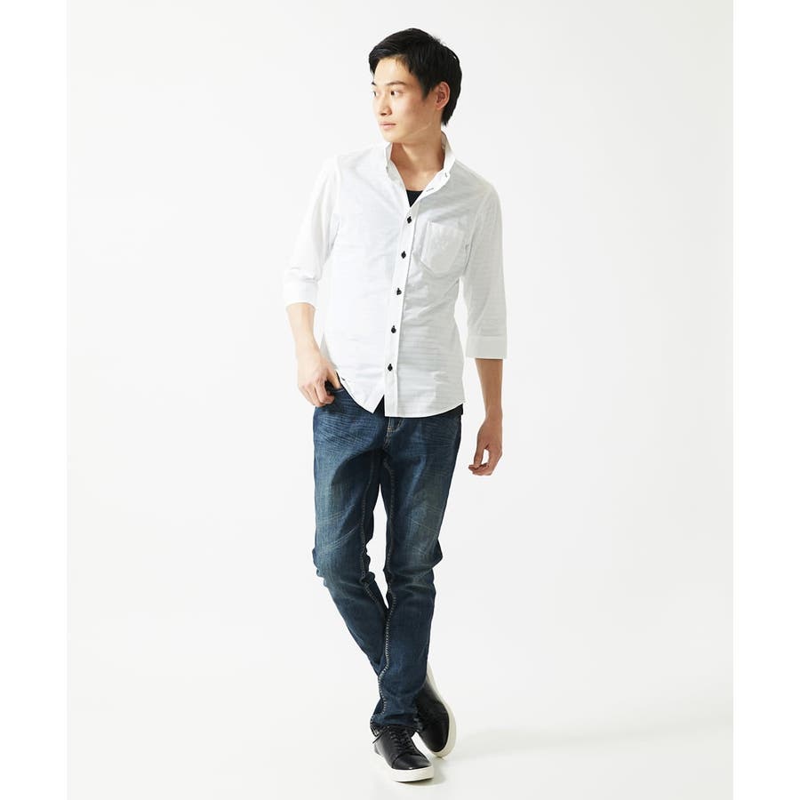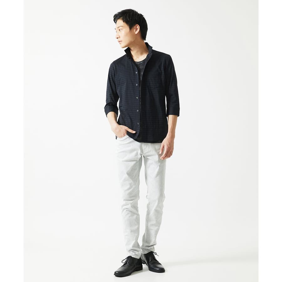 ・カフス裏面にはストライプ柄を配しロールアップ時のアクセントにしました。