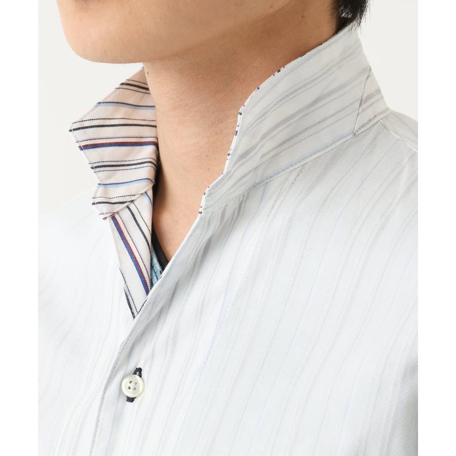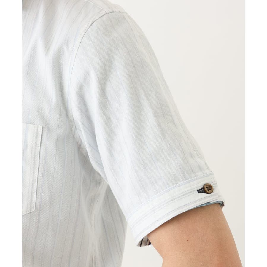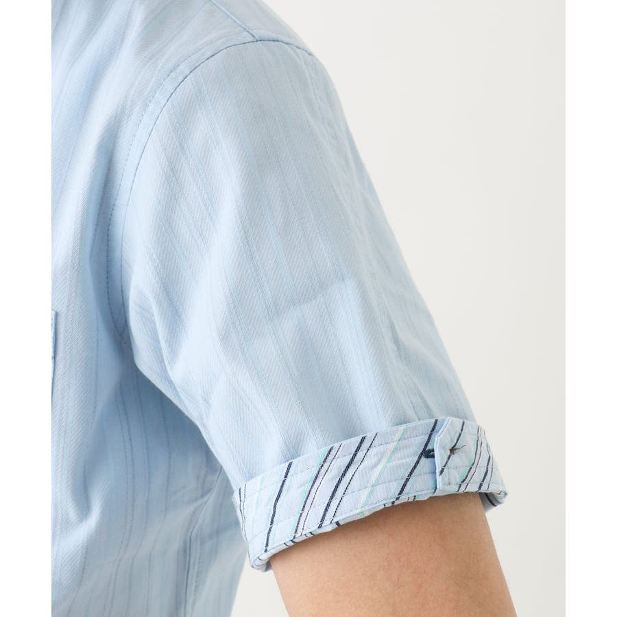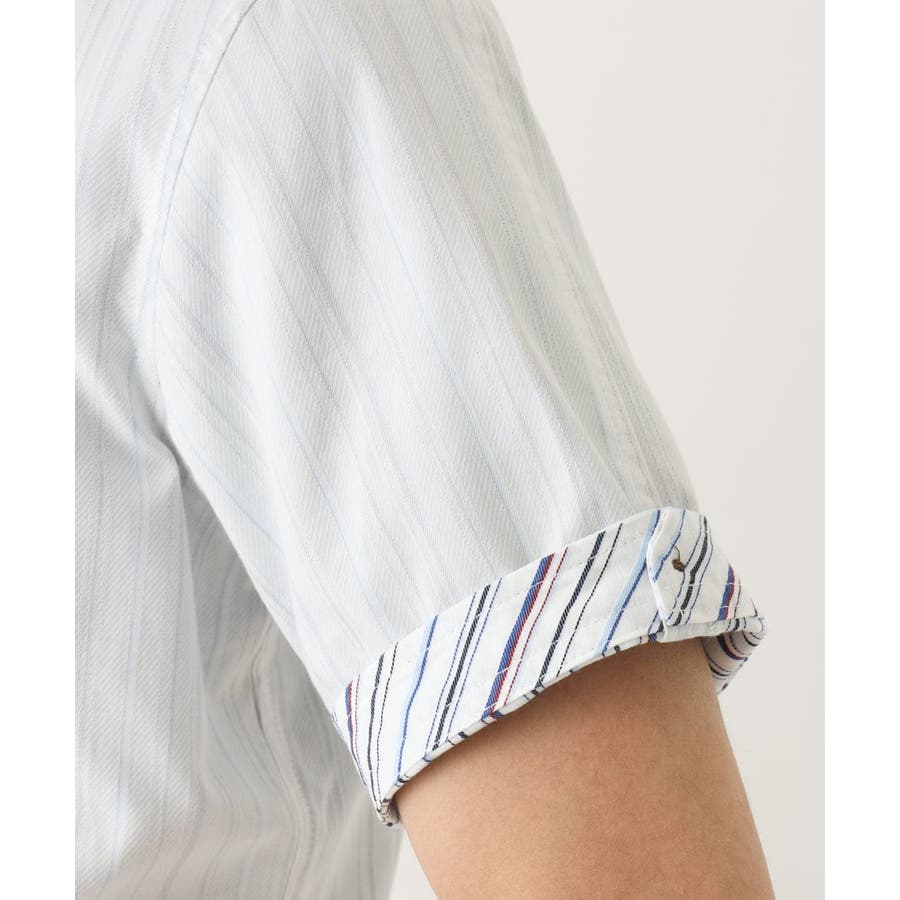 ・カフス裏面にはストライプ柄を配しロールアップ時のアクセントにしました。