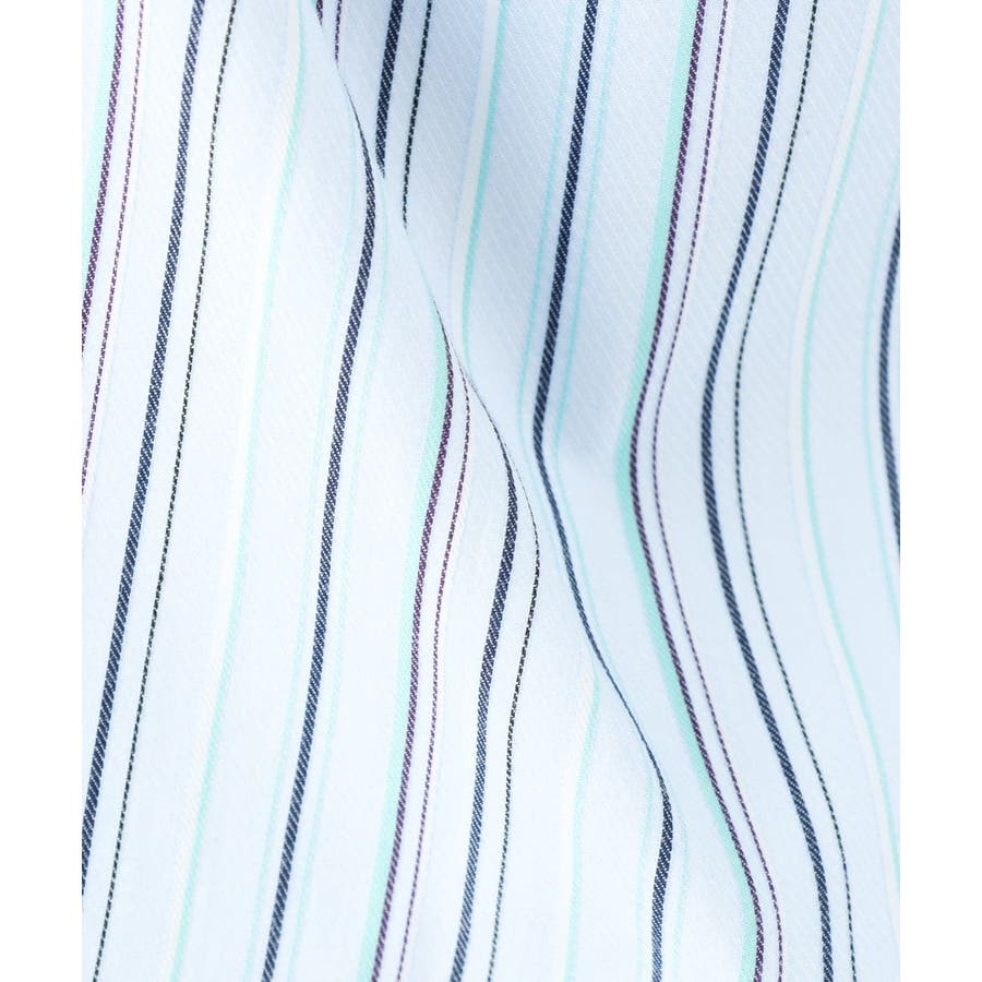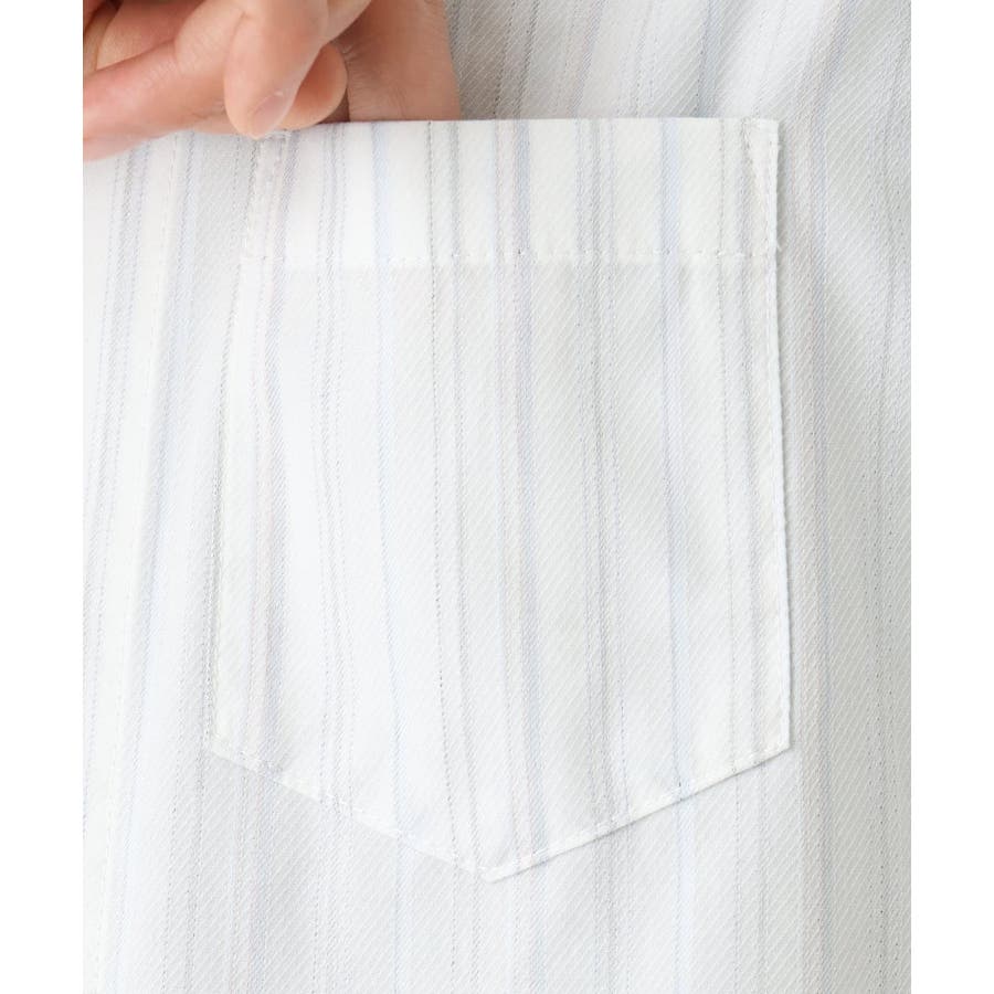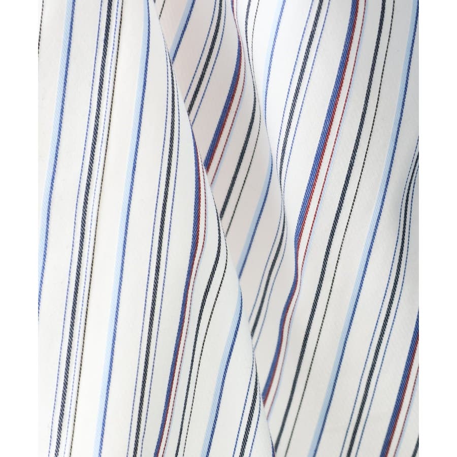 襟からチラッと見えるストライプ柄がこなれ感を演出します。