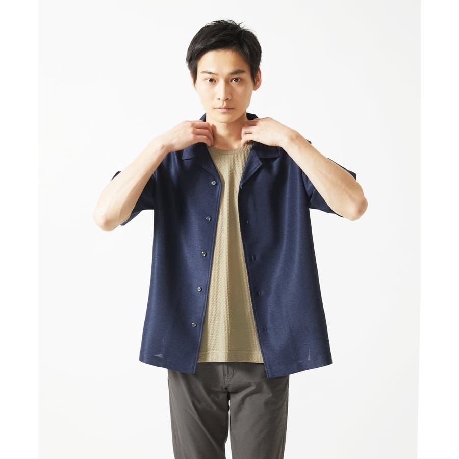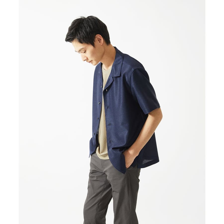 【洗える / 快適高通気素材】カラミストレッチ開襟シャツ