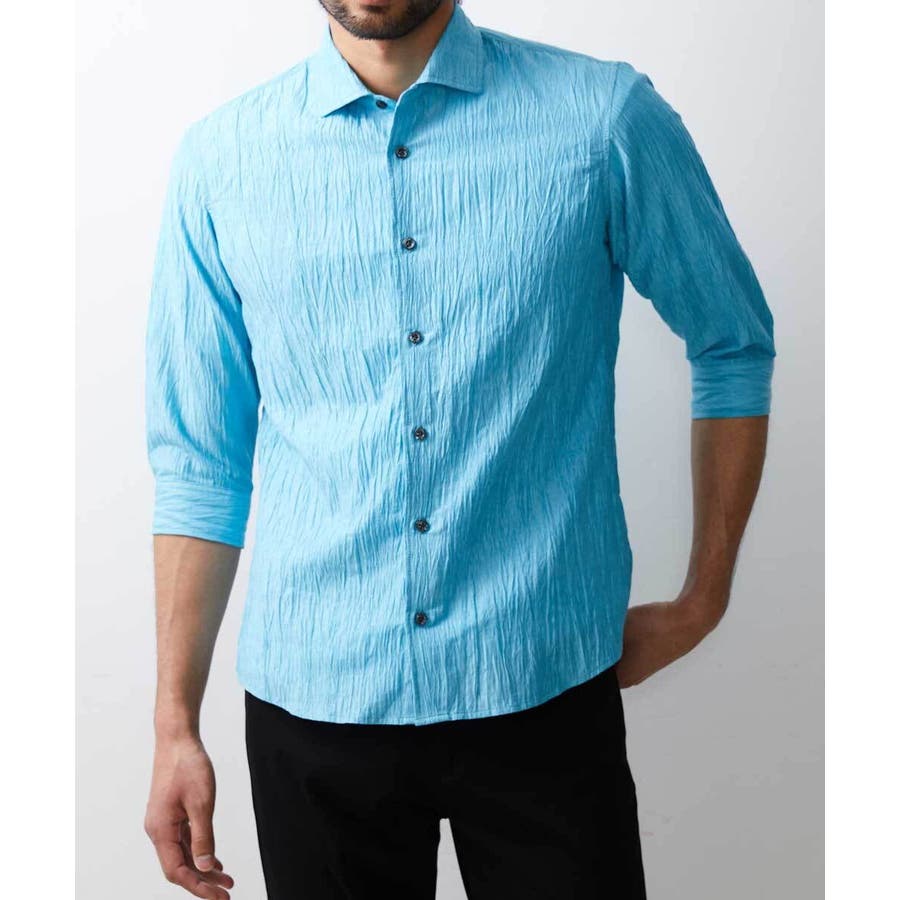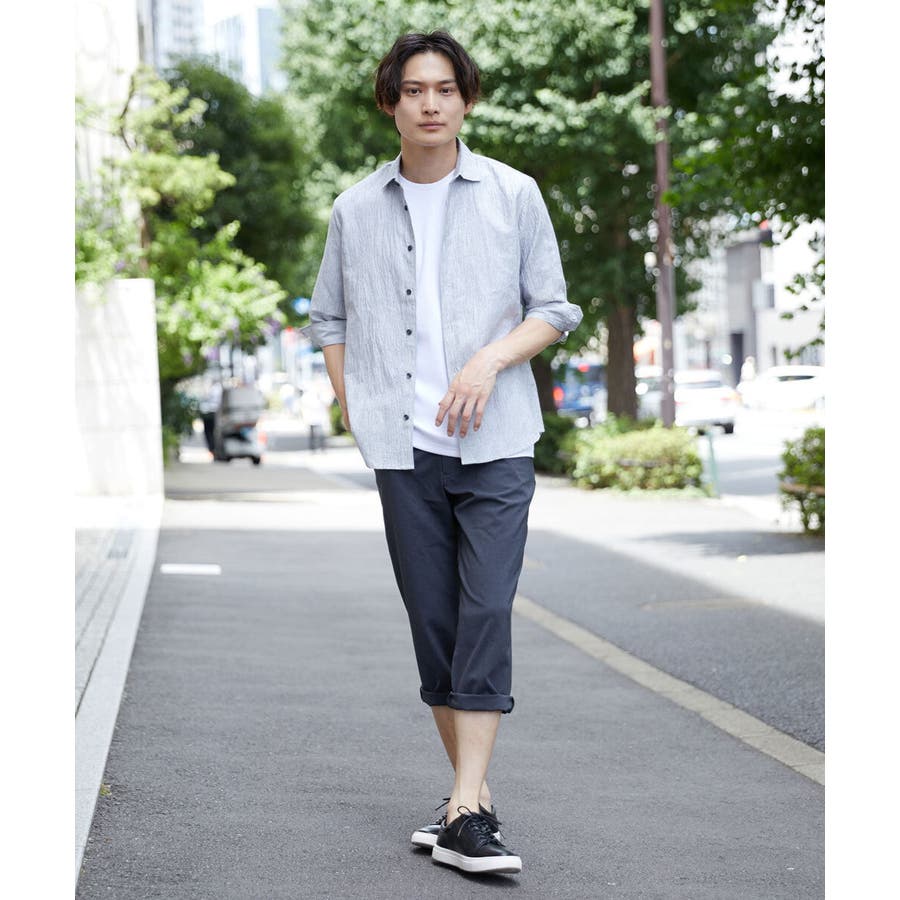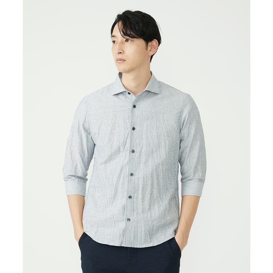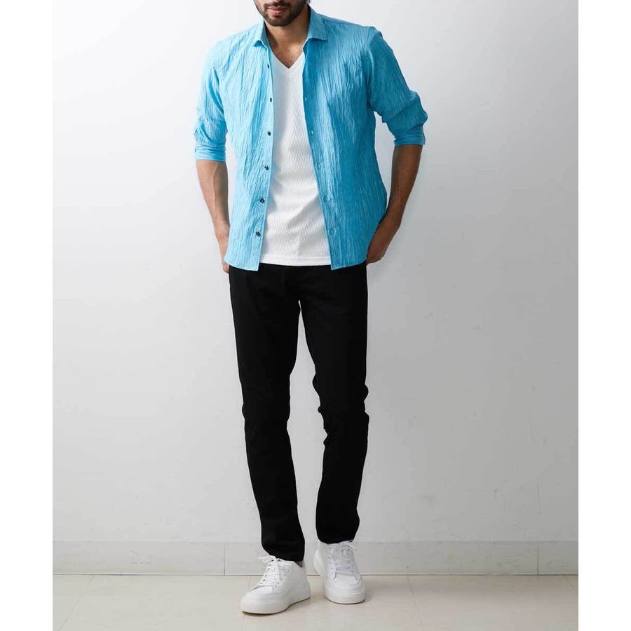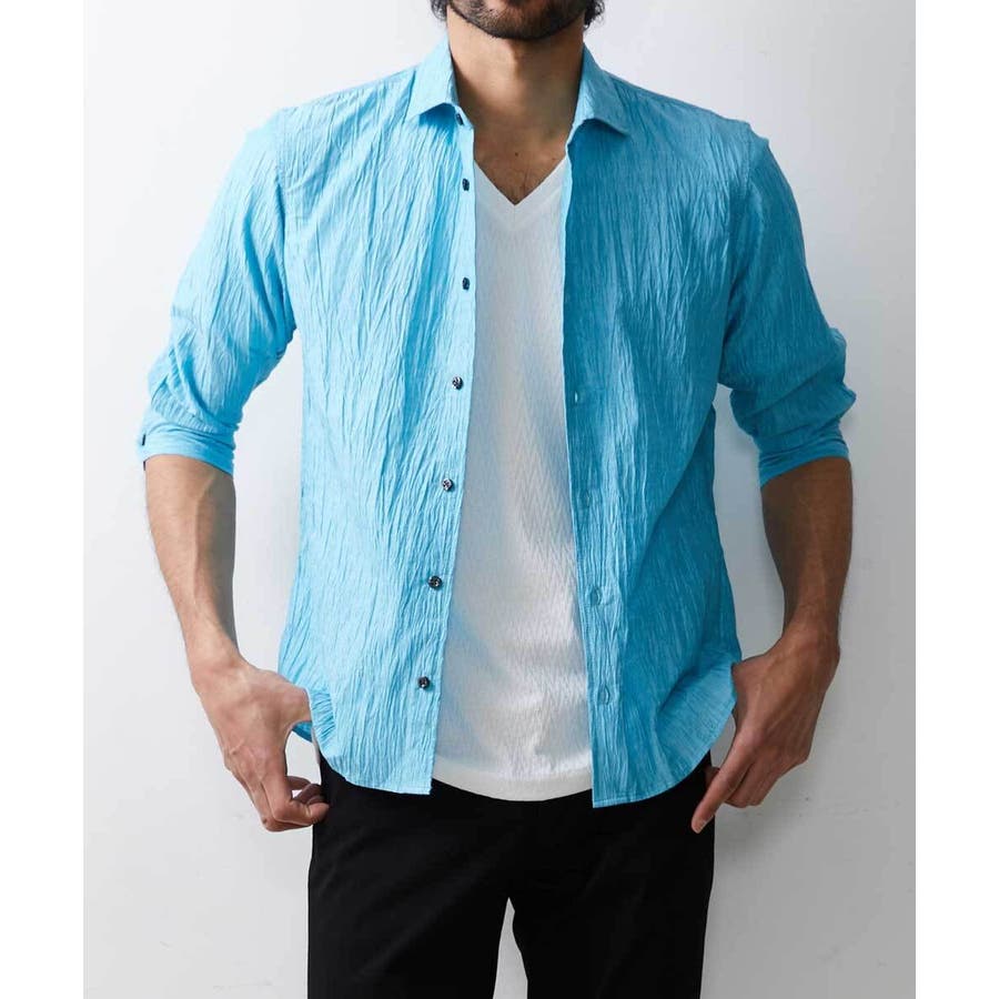 程よいシワ感がアクセントになる人気の羽織りシャツデザイン。