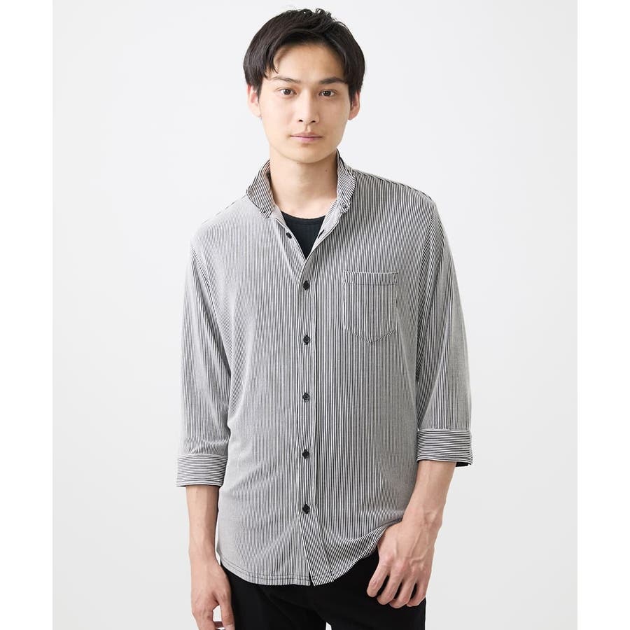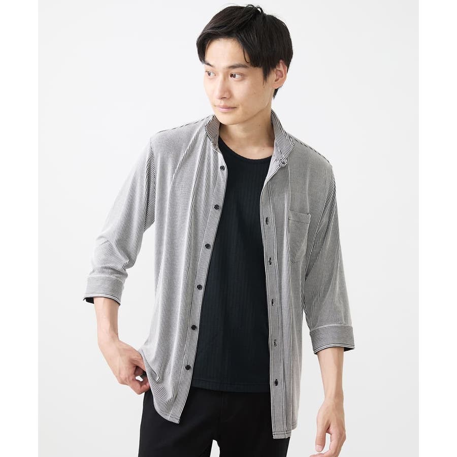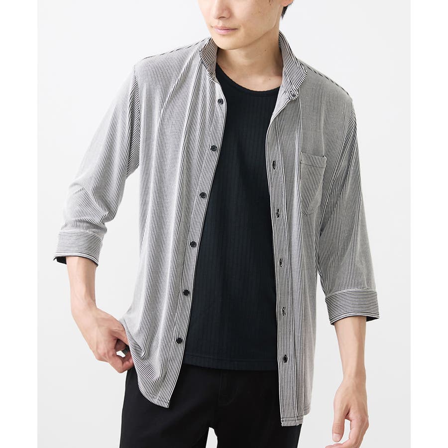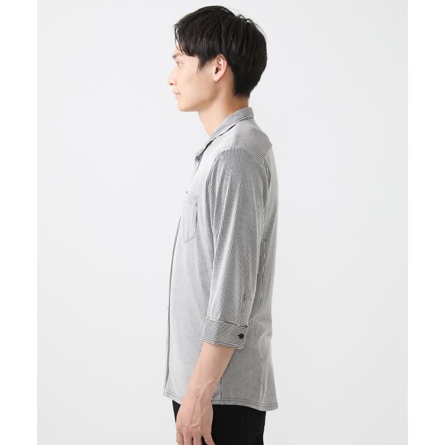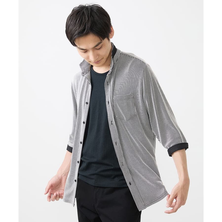 【大きいサイズあり】七分袖シャツ/ペンシルストライプジャージ